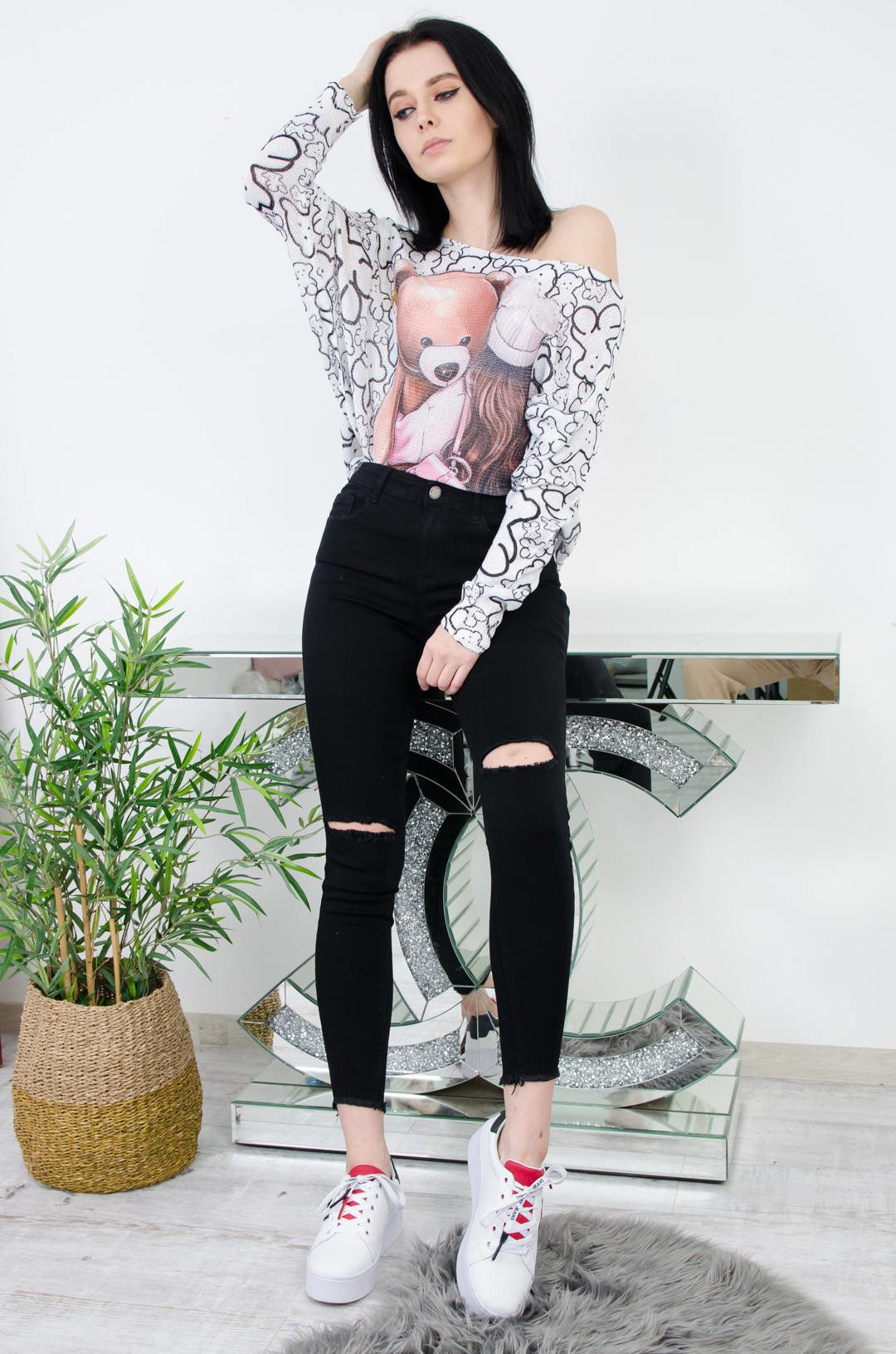 CZARNE SPODNIE SKINNY Z ROZCIĘCIAMI NA KOLANACH- WYSOKI STAN