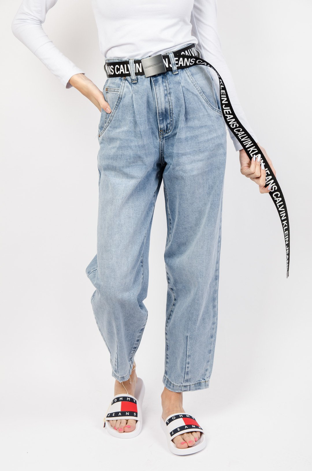NIEBIESKIE SPODNIE JEANSOWE TYPU BALLOON JEANS Z WYSOKIM STANEM