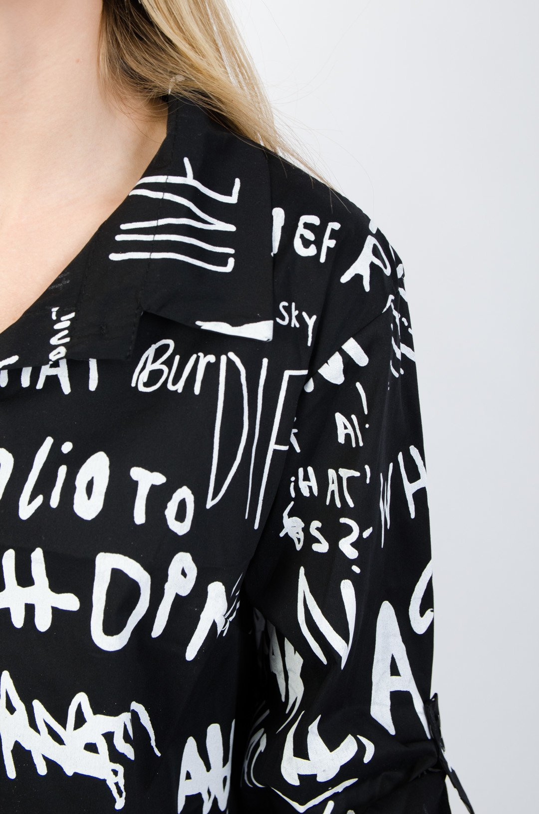 CZARNA KOSZULOWA SUKIENKA/TUNIKA Z NAPISAMI