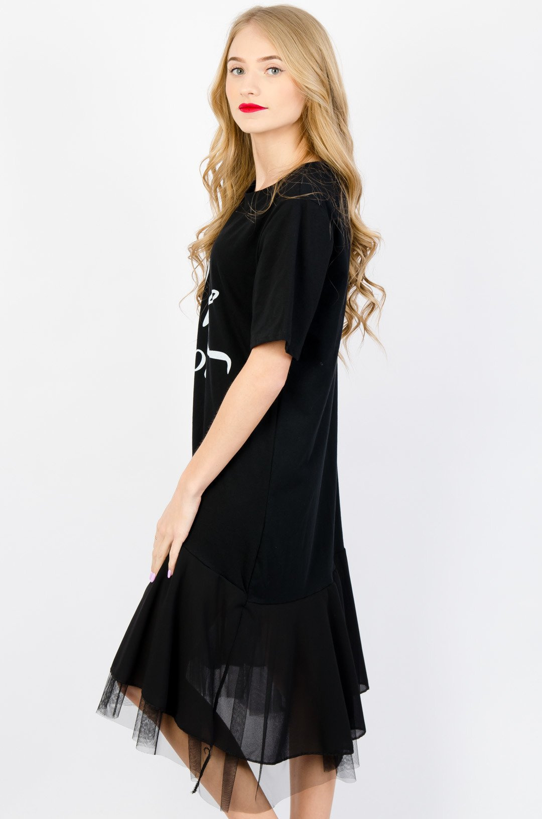 CZARNA BAWEŁNIANA SUKIENKA Z TIULEM