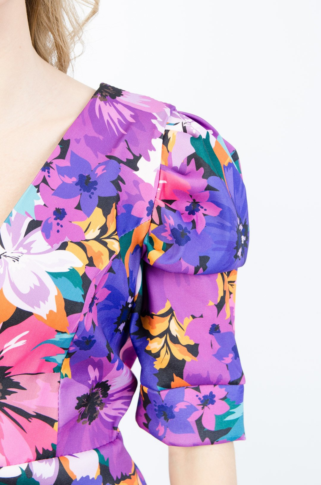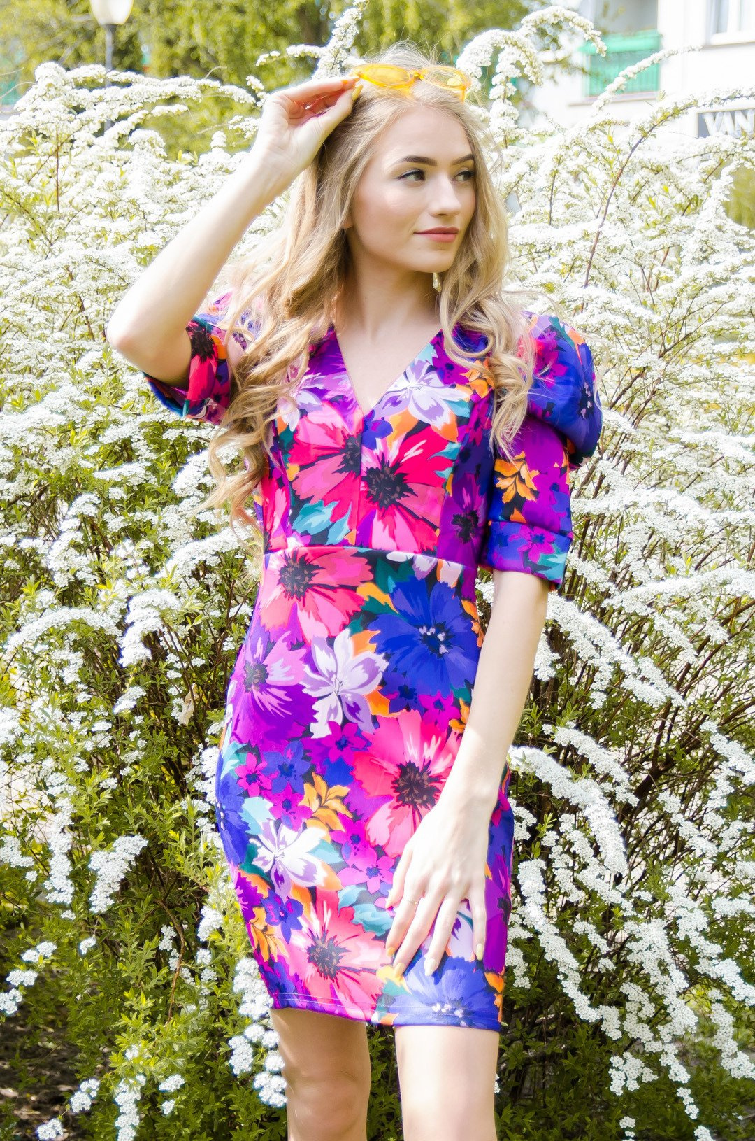 FIOLETOWA PRZYLEGAJĄCA SUKIENKA Z WYCIĘCIEM NA PLECACH