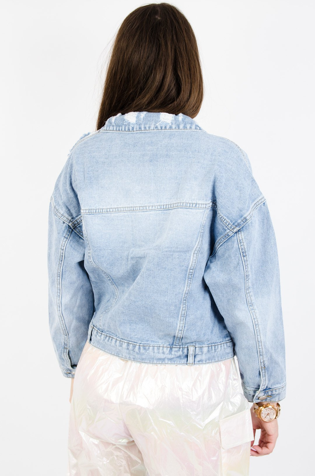 JASNA KURTKA JEANSOWA Z CEKINOWYMI KIESZENIAMI