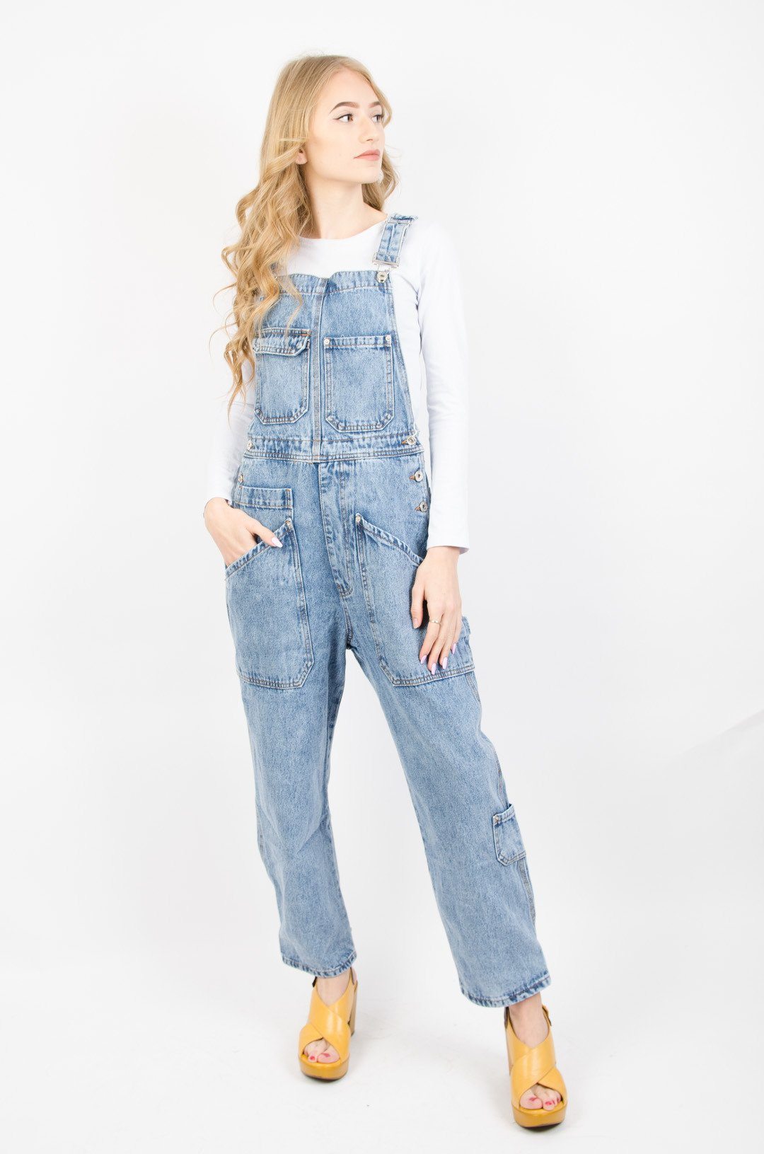 JEANSOWE OGRODNICZKI Z KIESZENIAMI