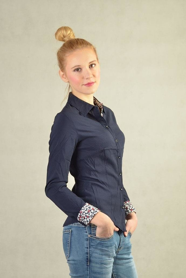 Elegancka koszula, zapinana na guziczki. Mankiety w kwiaty.