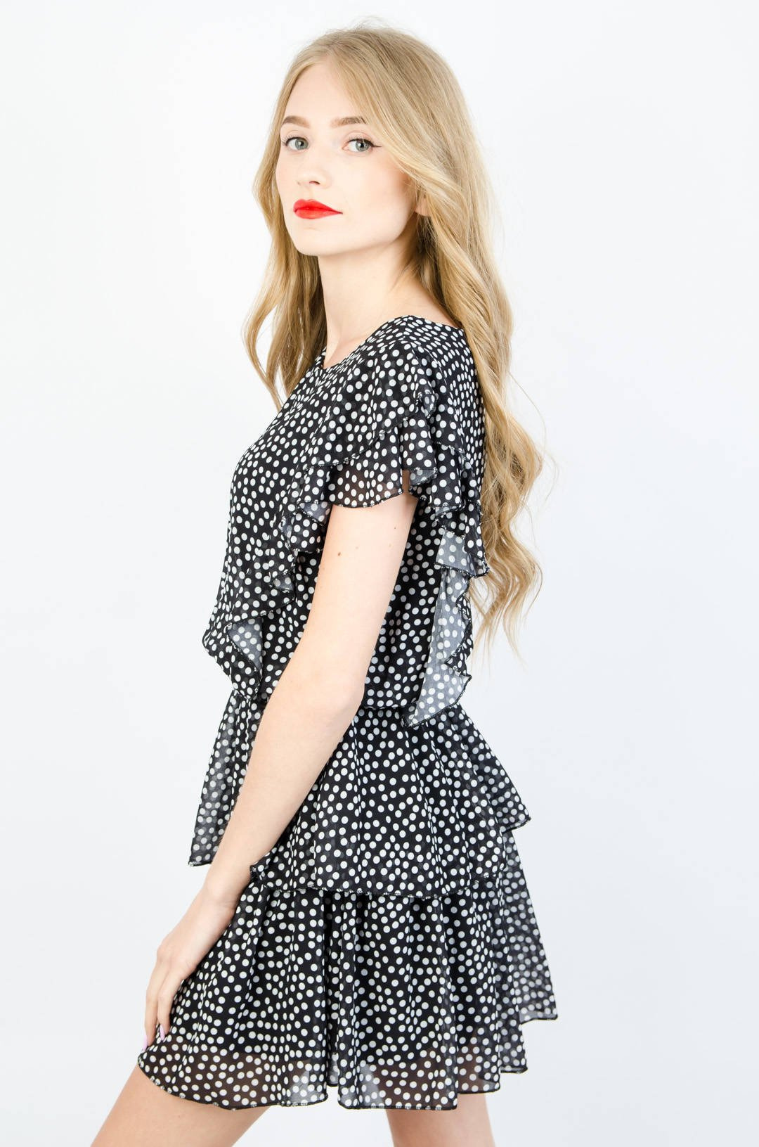 CZARNA ZWIEWNA SUKIENKA BUTTERFLY W KROPKI
