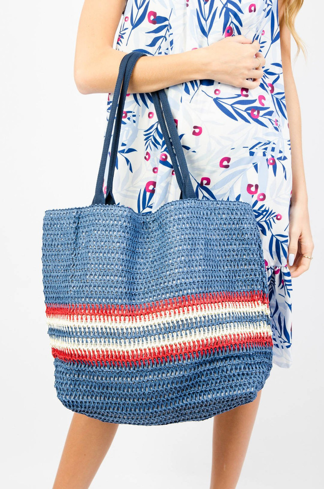 NIEBIESKA SŁOMIANA TORBA PLAŻOWA