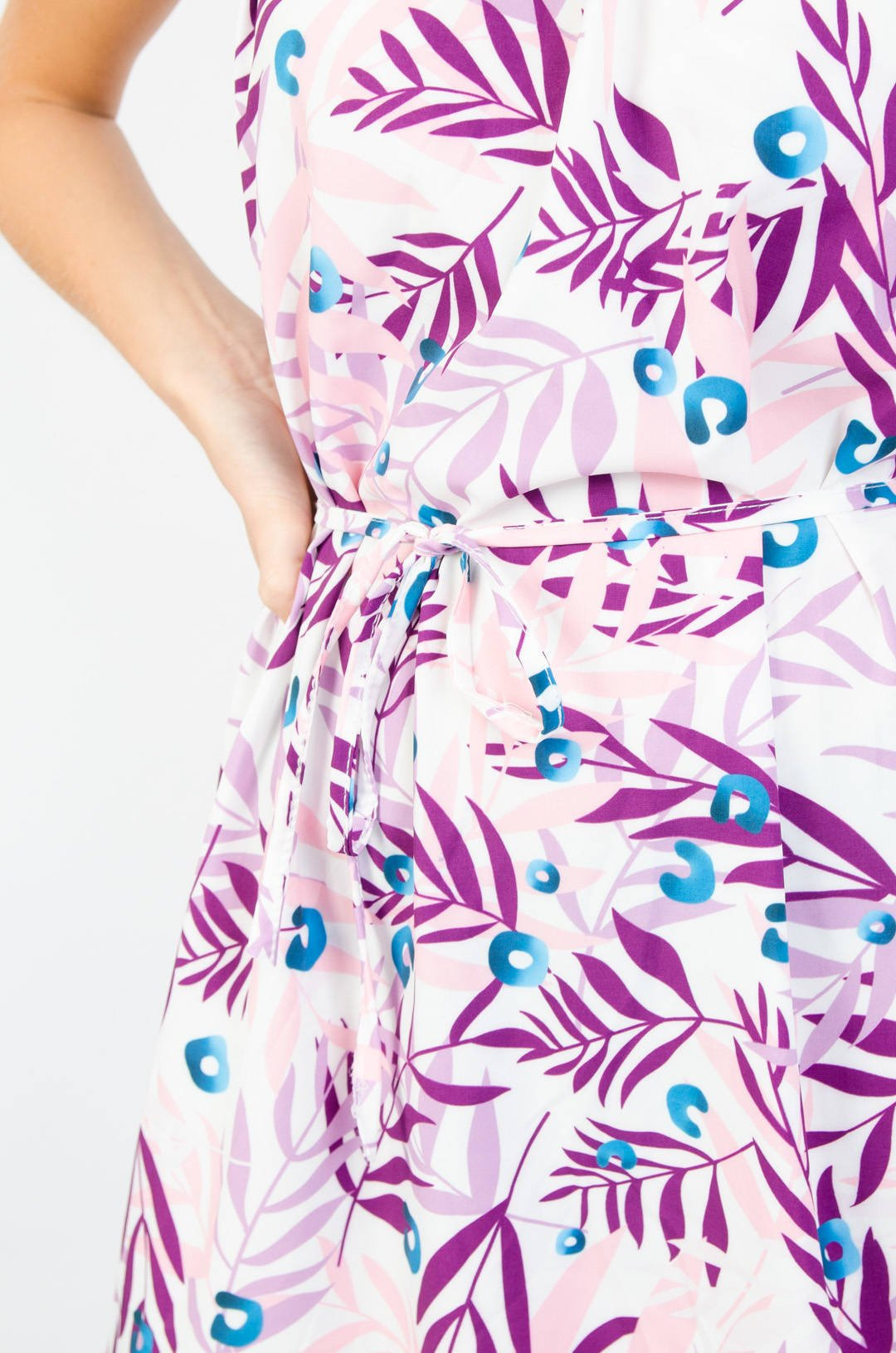 WZORZYSTA SUKIENKA WIĄZANA W PASIE - BIAŁO-RÓŻOWA