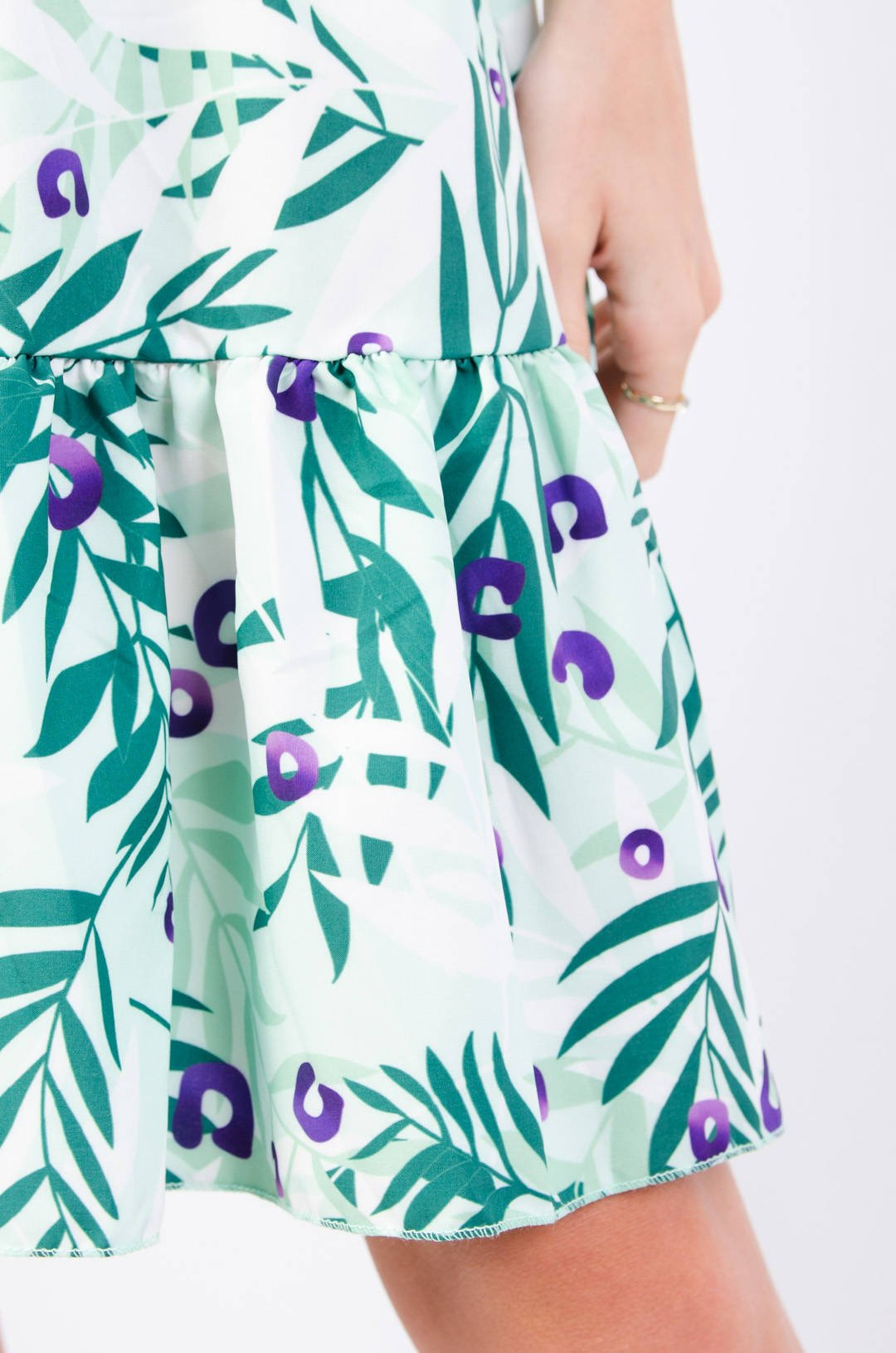 WZORZYSTA SUKIENKA WIĄZANA W PASIE - ZIELONA