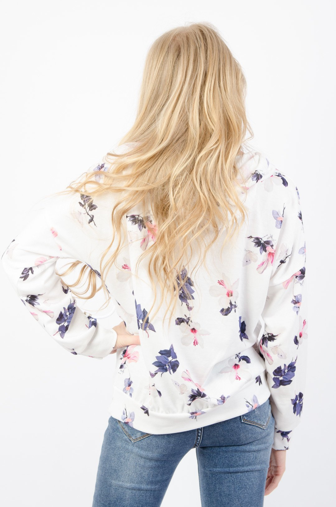 BIAŁA BLUZA Z KAPTUREM Z MOTYWEM KWIATOWYM