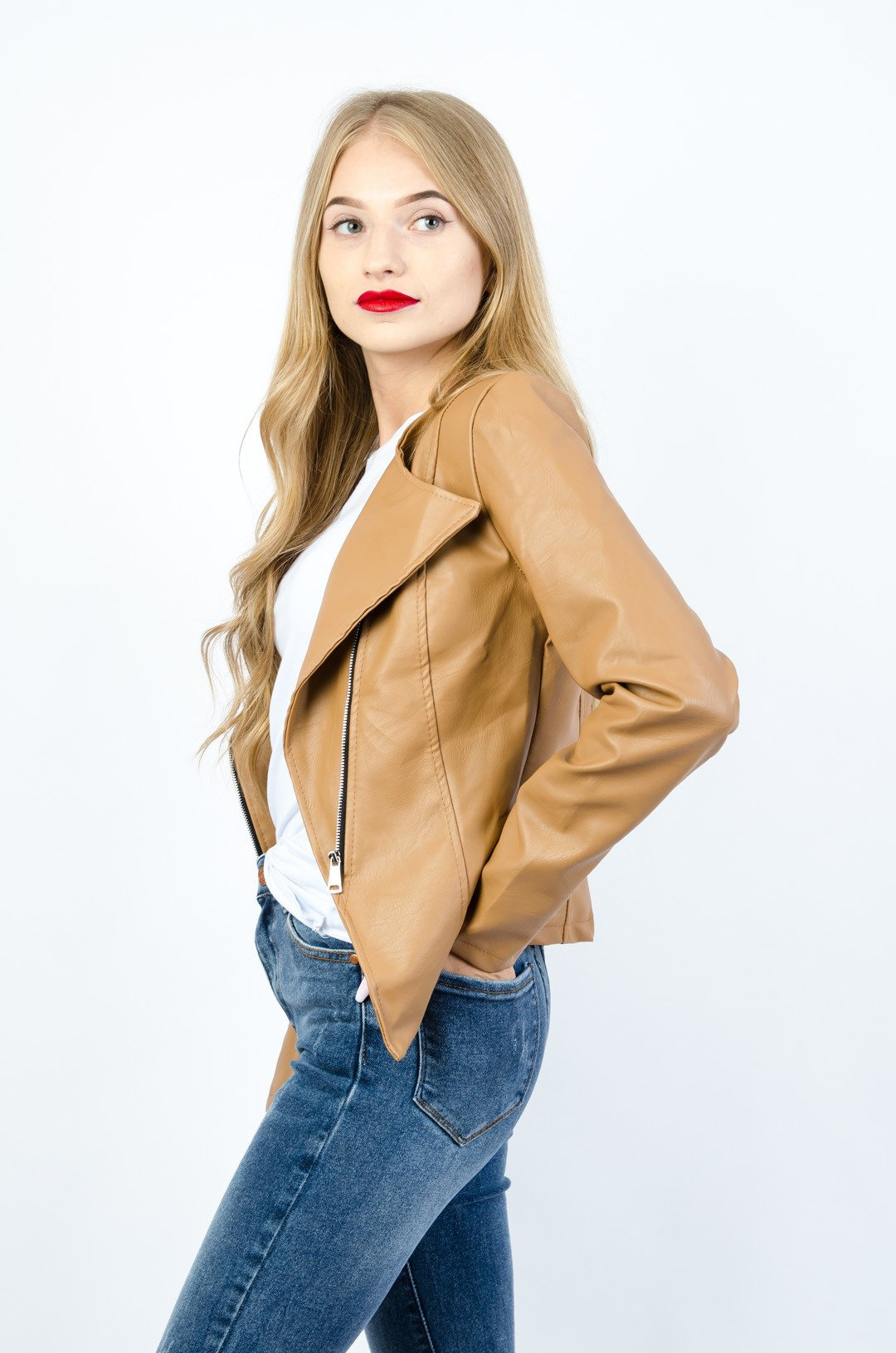 BRĄZOWY SKAJKOWY ŻAKIET ZE SREBRNYM ZAMKIEM