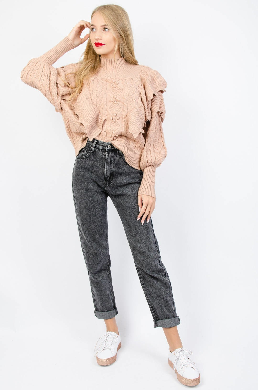 JASNO-BRĄZOWY SWETER Z PÓŁGOLFEM