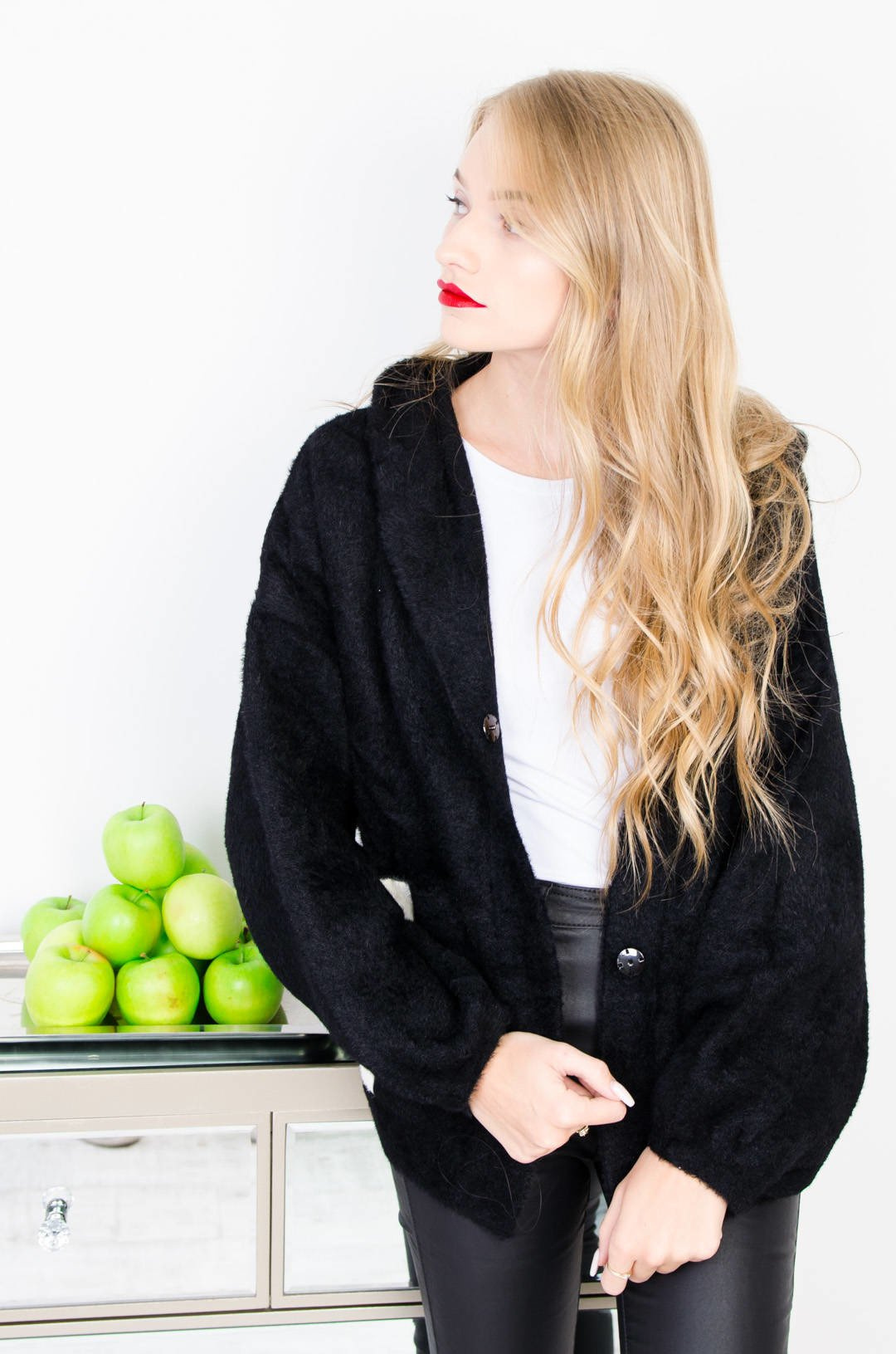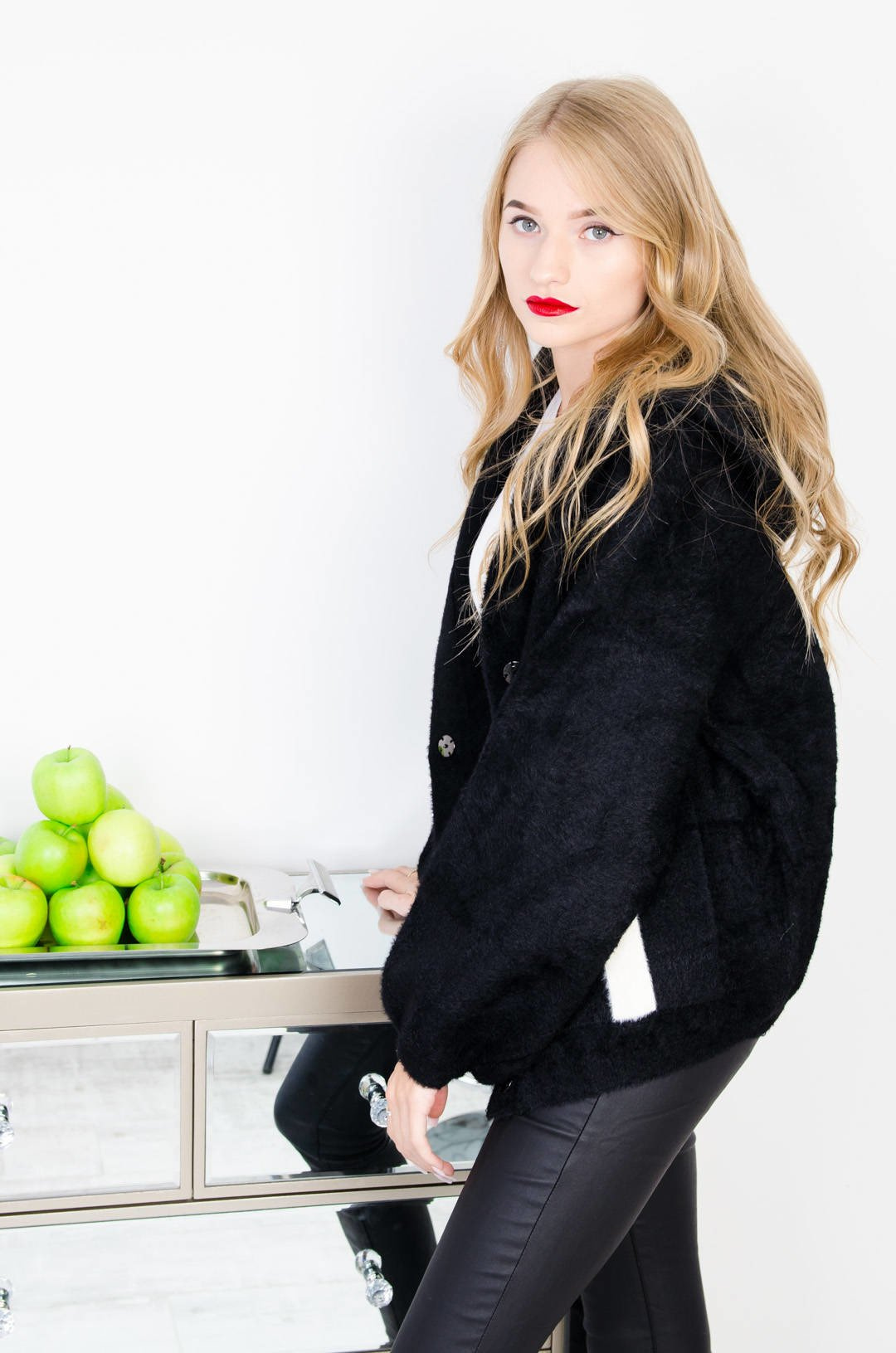 NARZUTA ALPAKA Z KAPTUREM - CZARNA