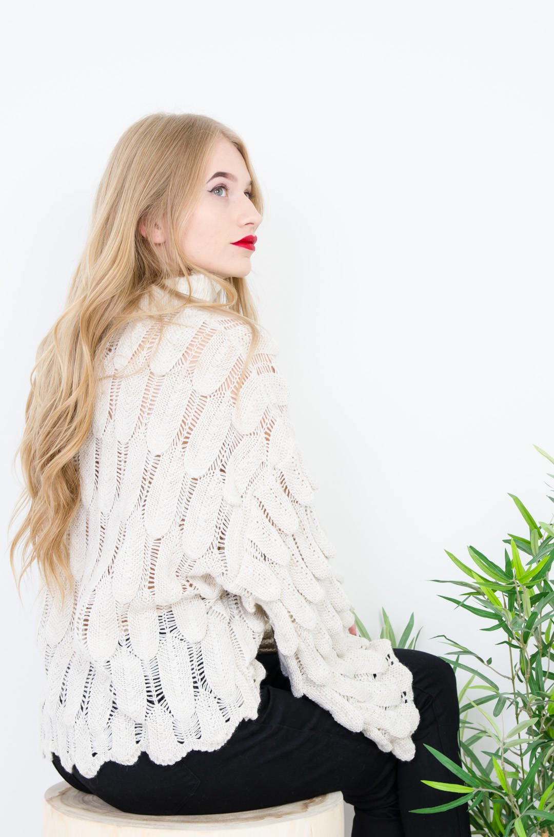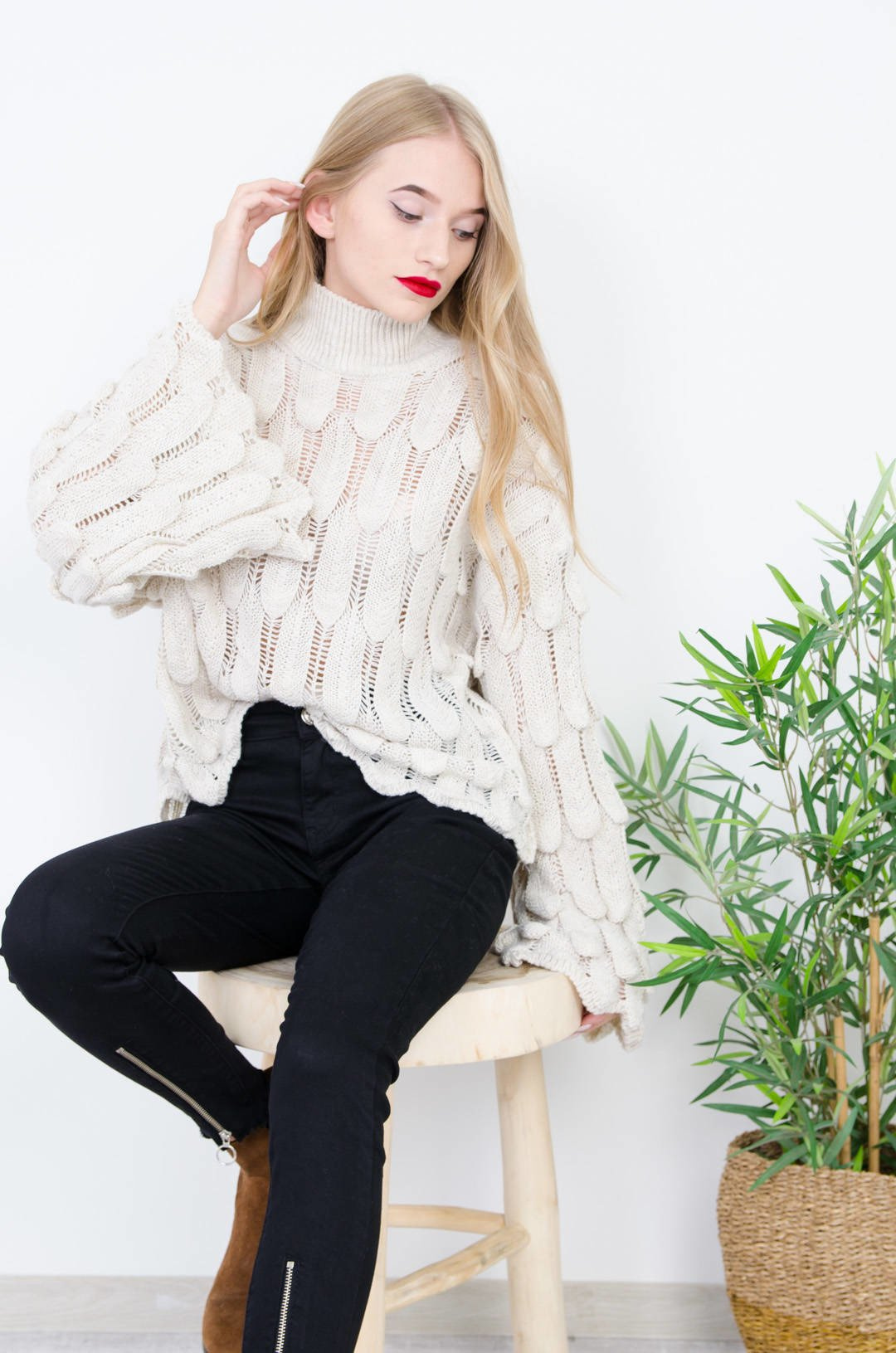 BEŻOWY OVERSIZOWY SWETER Z GRUBYM SPLOTEM