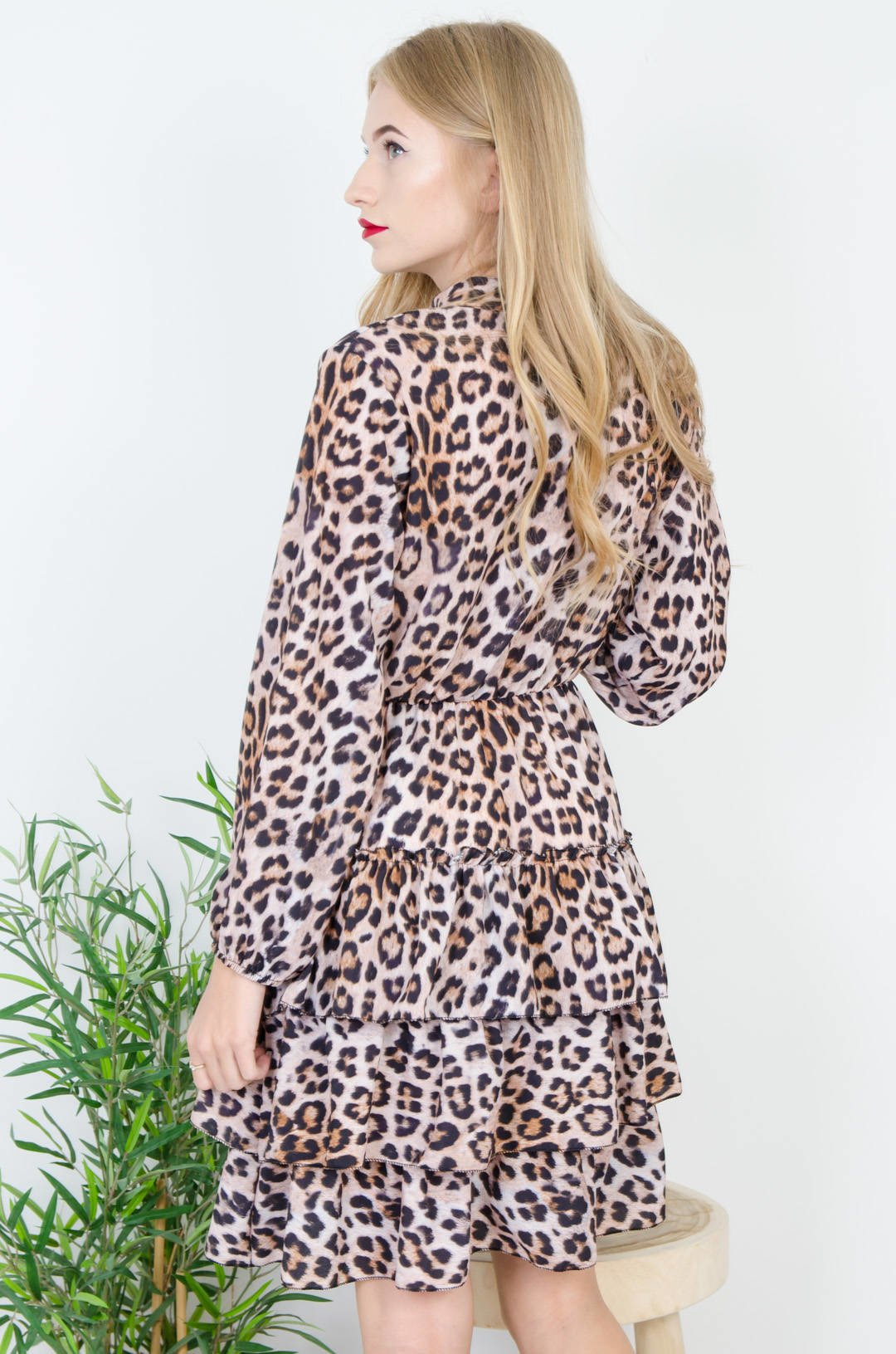 ROZKLOSZOWANA SUKIENKA W PANTERKĘ WIĄZANA PRZY SZYI