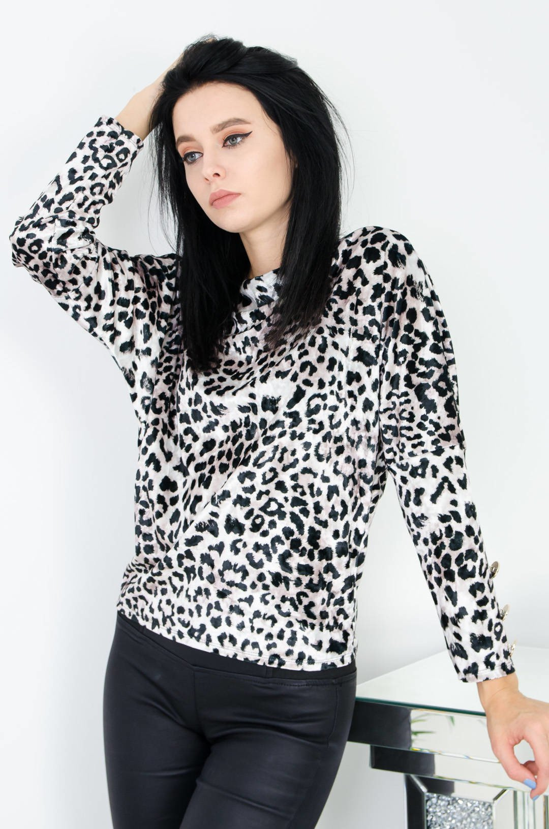 WELUROWA BLUZKA W PANATERKĘ Z LEJĄCYM DEKOLTEM