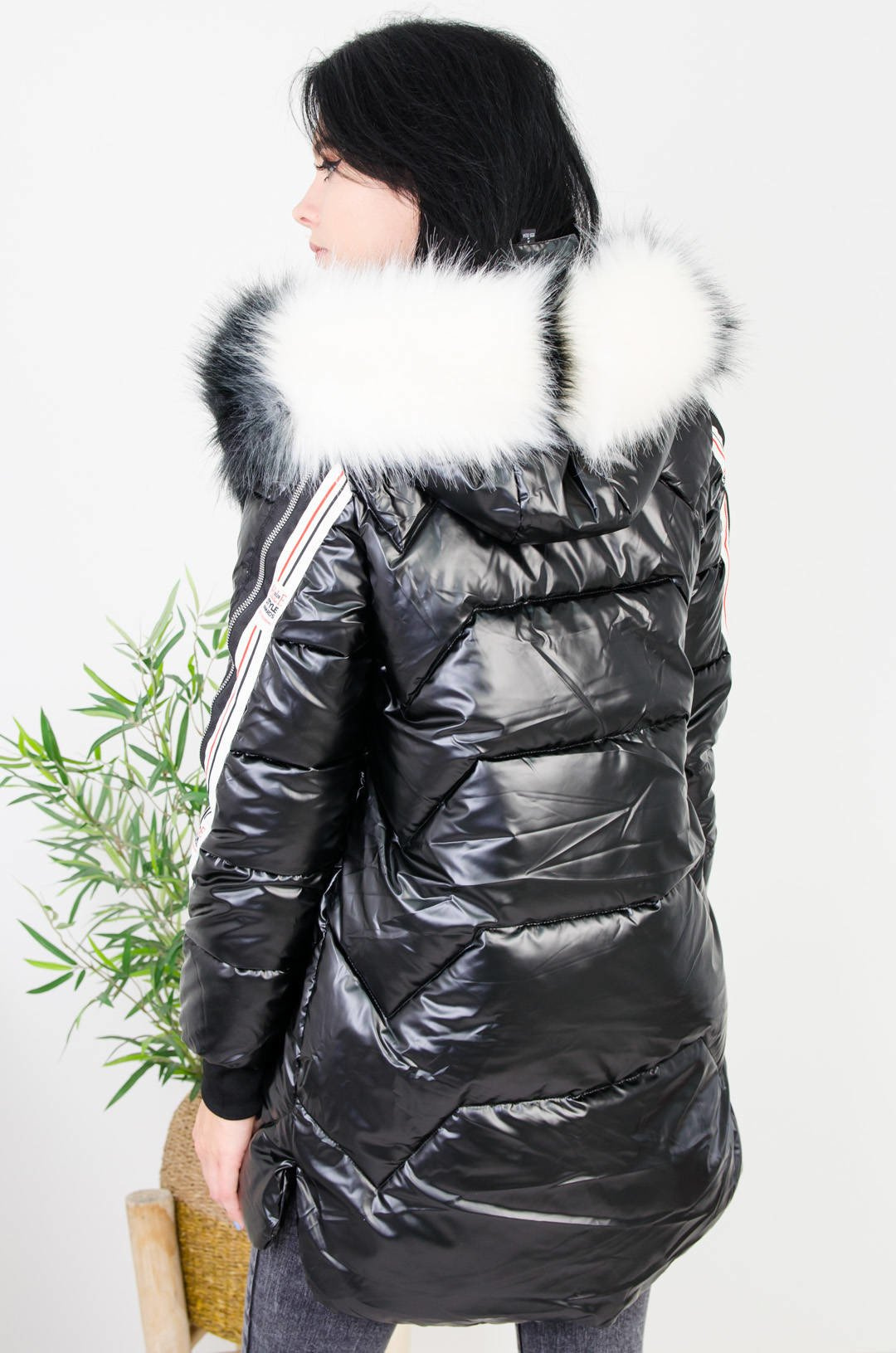 CZARNA POŁYSKUJĄCA KURTKA Z LAMPASAMI