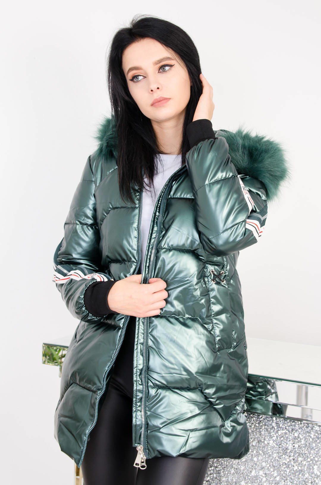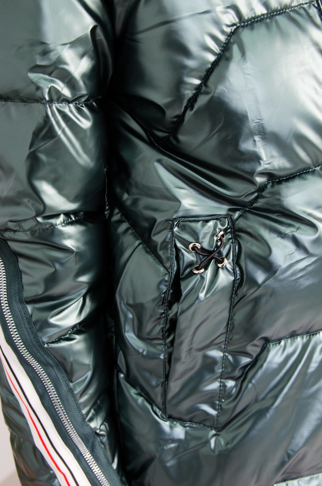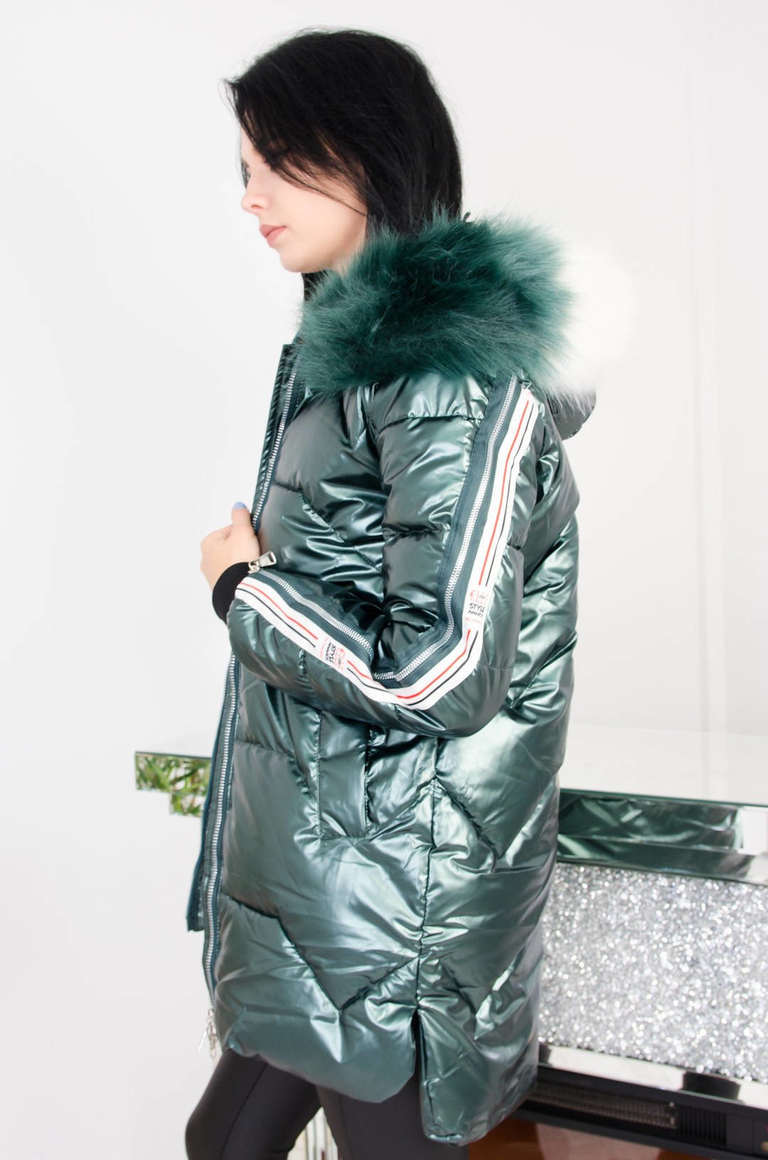 ZIELONA POŁYSKUJĄCA KURTKA Z LAMPASAMI