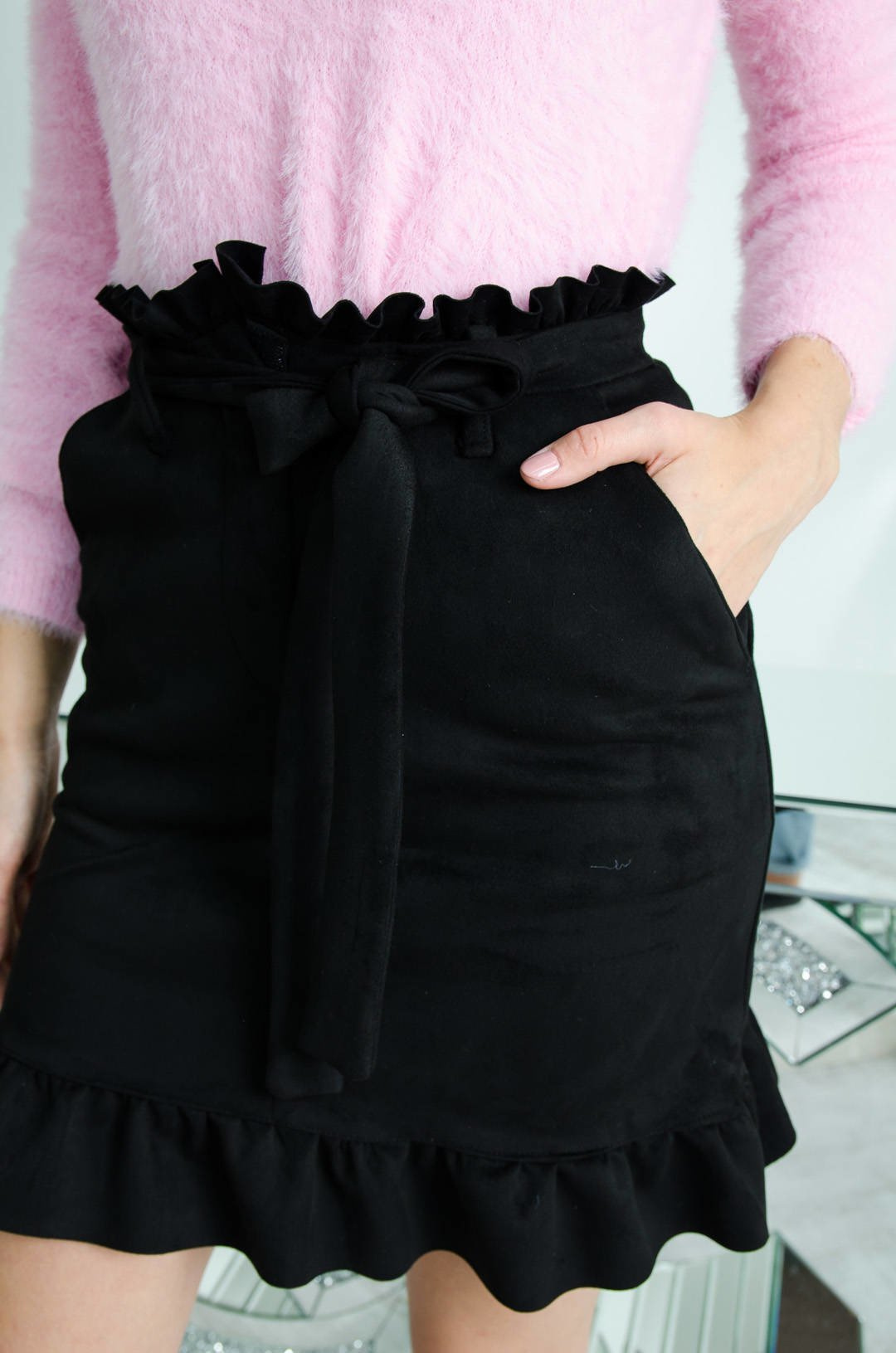 CZARNA ZAMSZOWA SPÓDNICA Z FALBANĄ