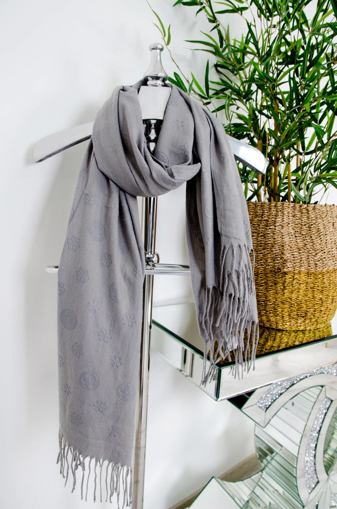 JASNO-SZARY SZAL Z WYTŁACZANYM WZOREM