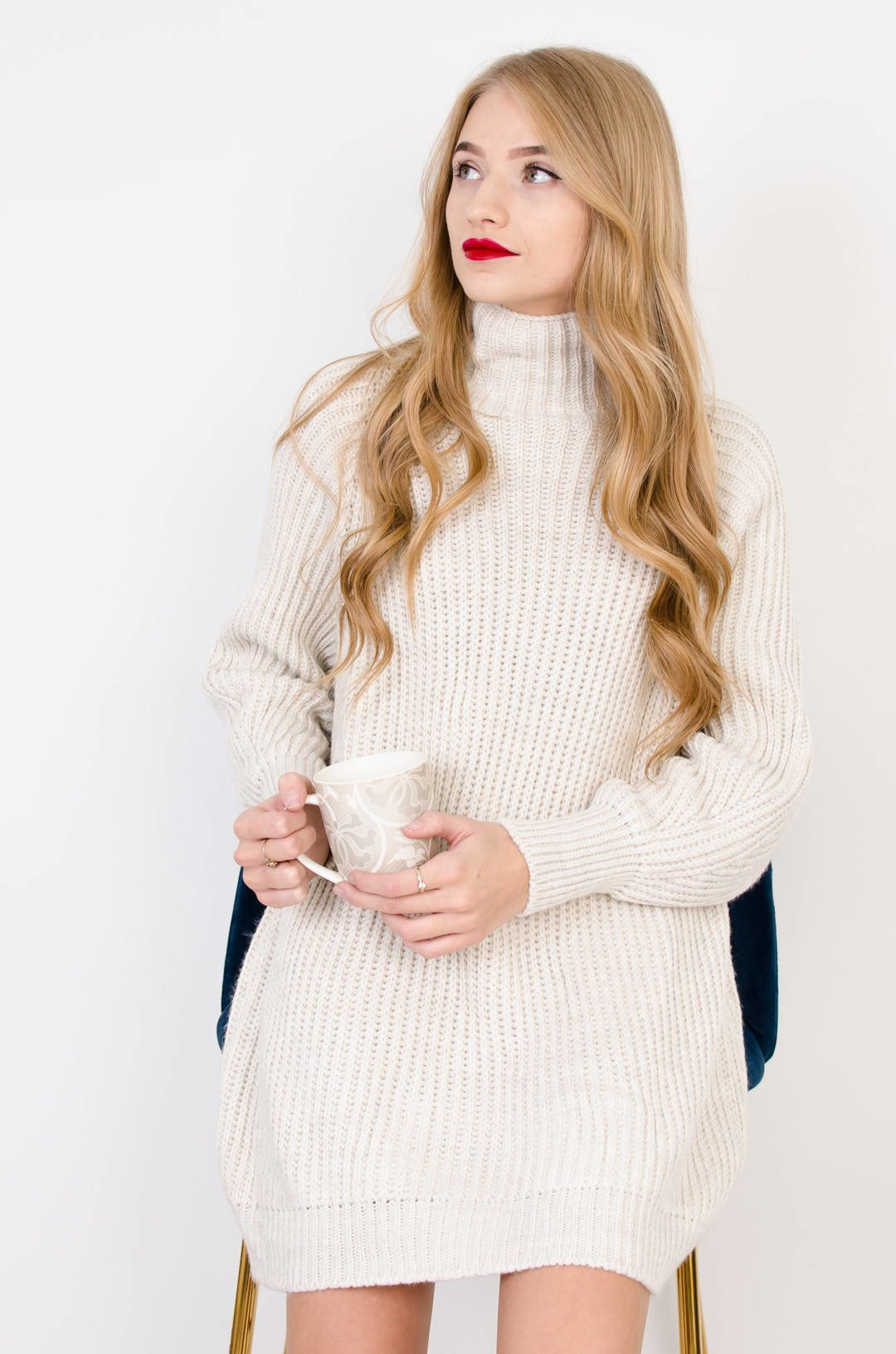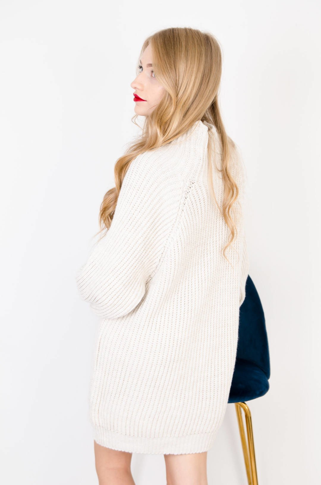 DŁUGI BEŻOWY SWETER Z PÓŁGOLFEM