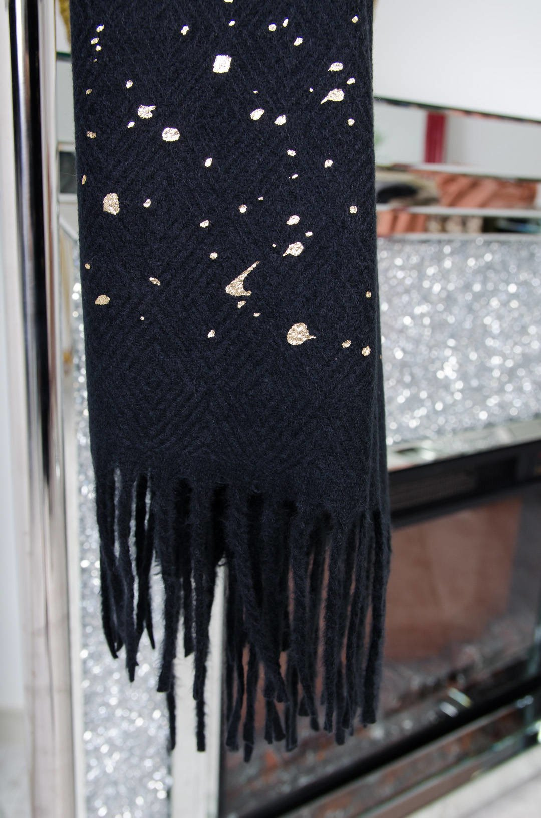 CZARNO-ZŁOTY SZAL Z FRĘDZLAMI