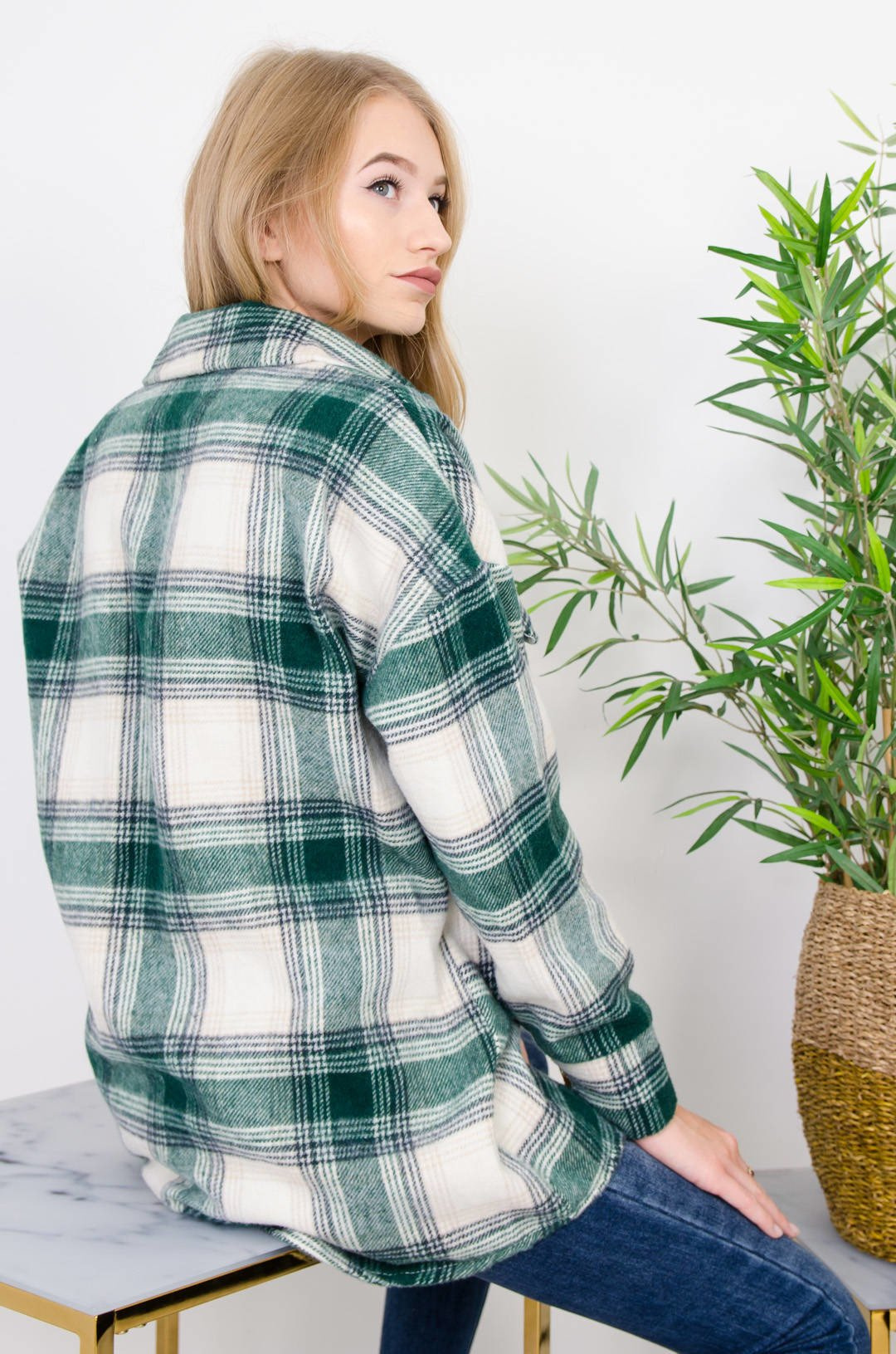 ZIELONA FLANELOWA KOSZULA W KRATĘ ZAPINANA NA GUZIKI