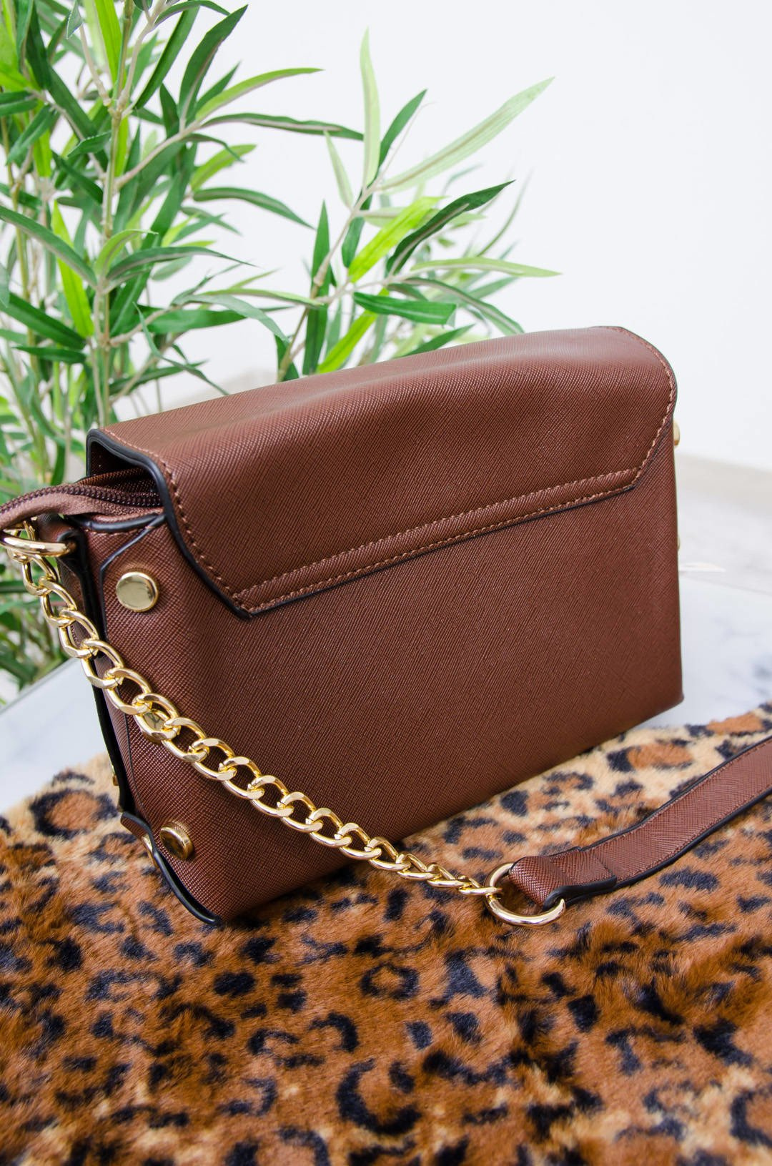 CIEMNO BRĄZOWA TOREBKA LISTONOSZKA ZE ZŁOTYMI GUZIKAMI