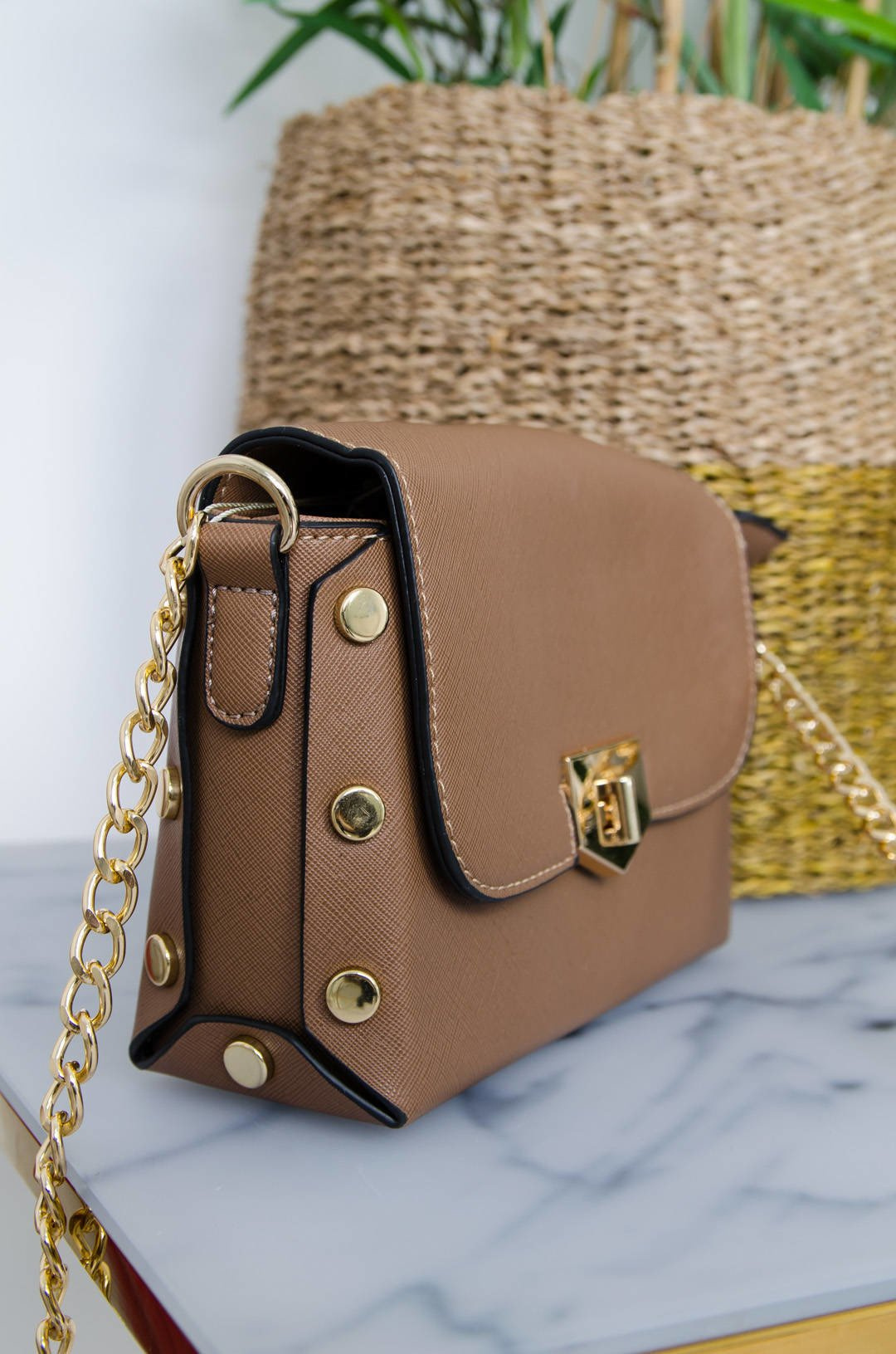 CIEMNO BEŻOWA TOREBKA LISTONOSZKA ZE ZŁOTYMI GUZIKAMI