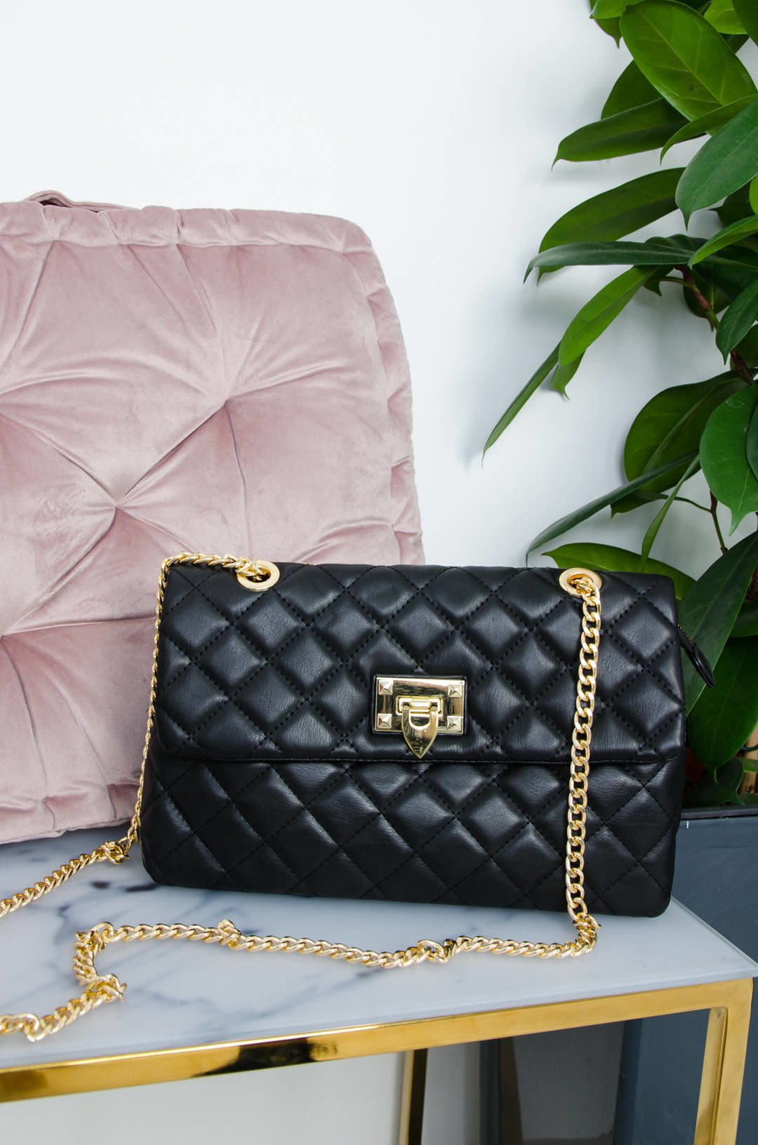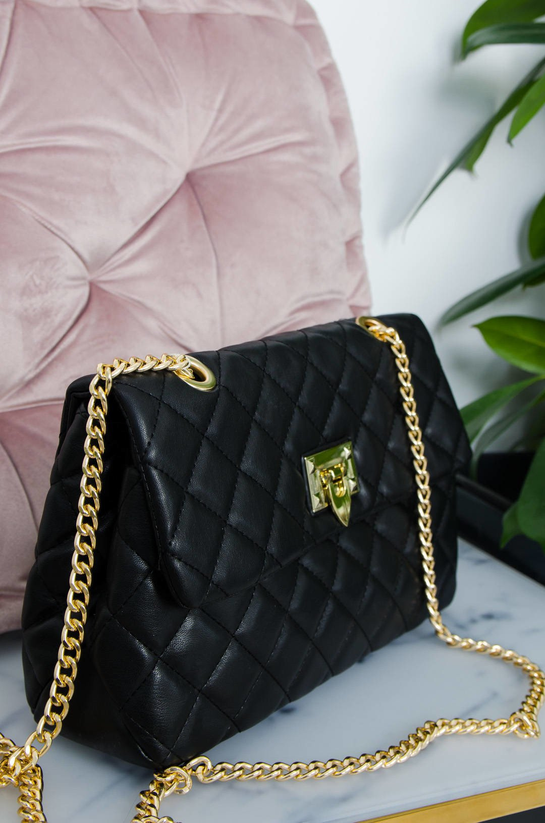 CZARNA PIKOWANA CHANELKA NA ZŁOTYM ŁAŃCUSZKU