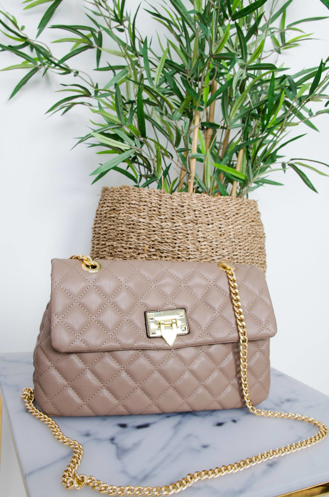BEŻOWA PIKOWANA CHANELKA NA ZŁOTYM ŁAŃCUSZKU