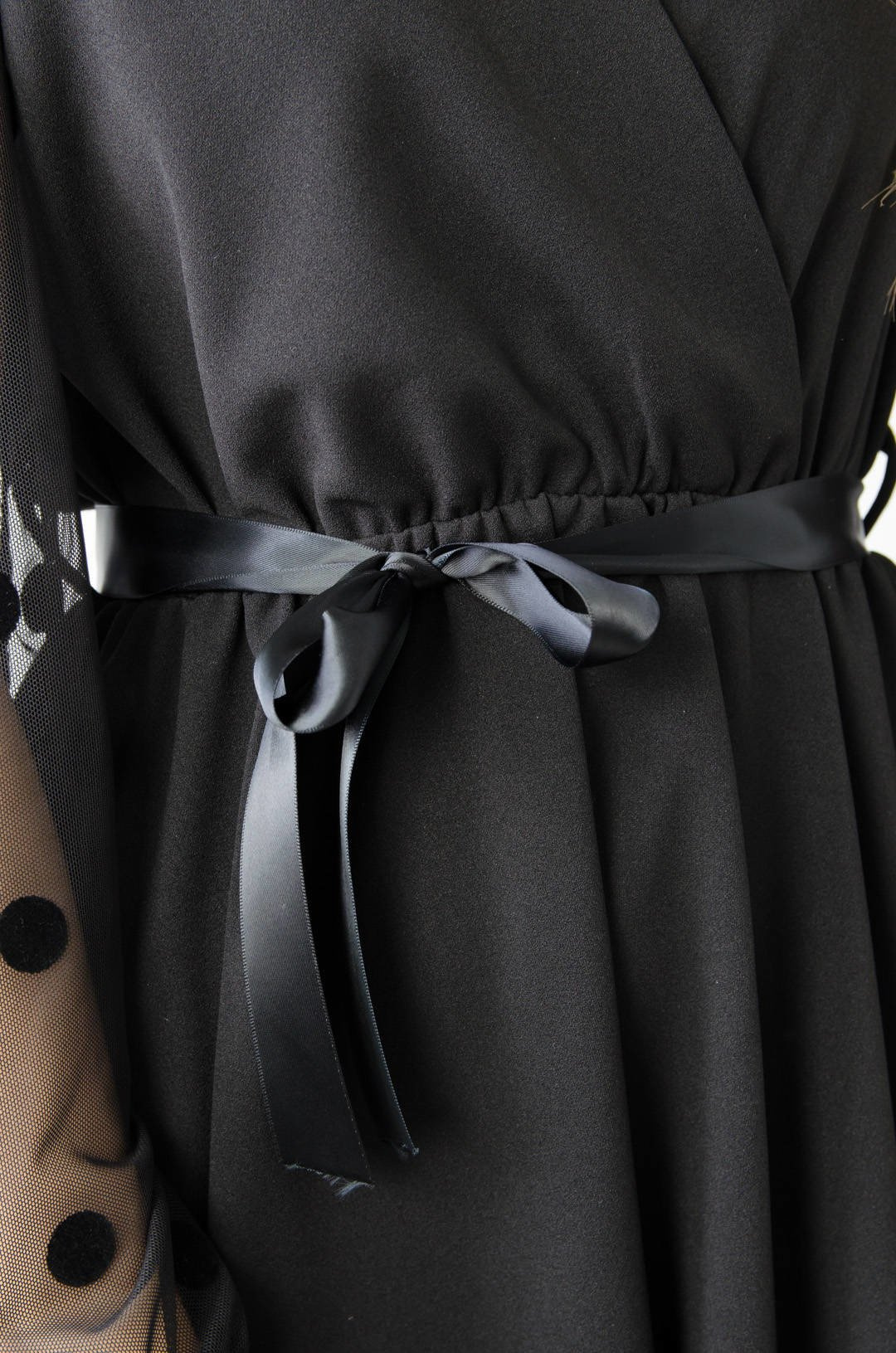 CZARNA SUKIENKA Z KOPERTOWYM DEKOLTEM,WIĄZANA W PASIE WSTĄŻKĄ