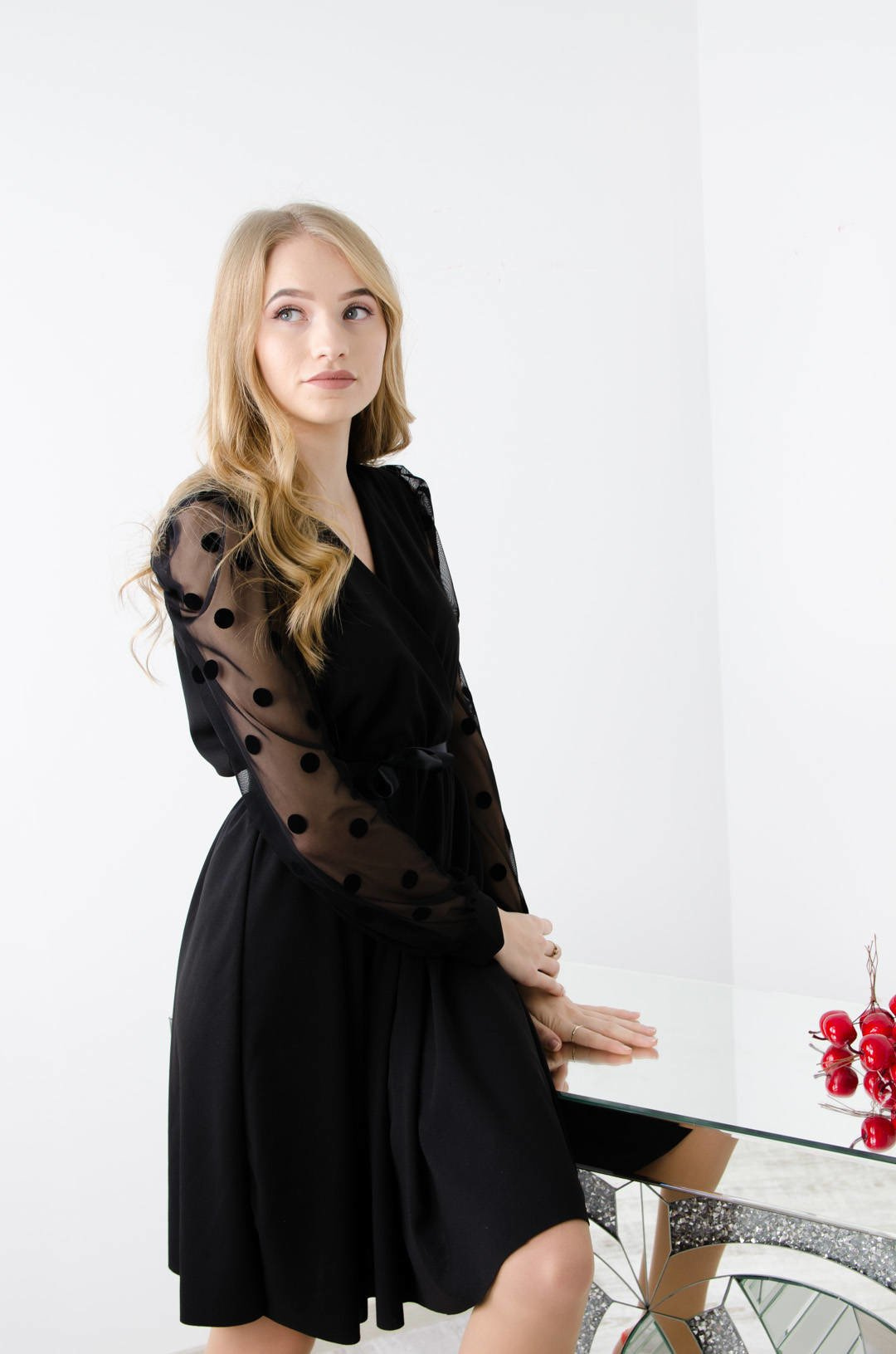 CZARNA SUKIENKA Z KOPERTOWYM DEKOLTEM