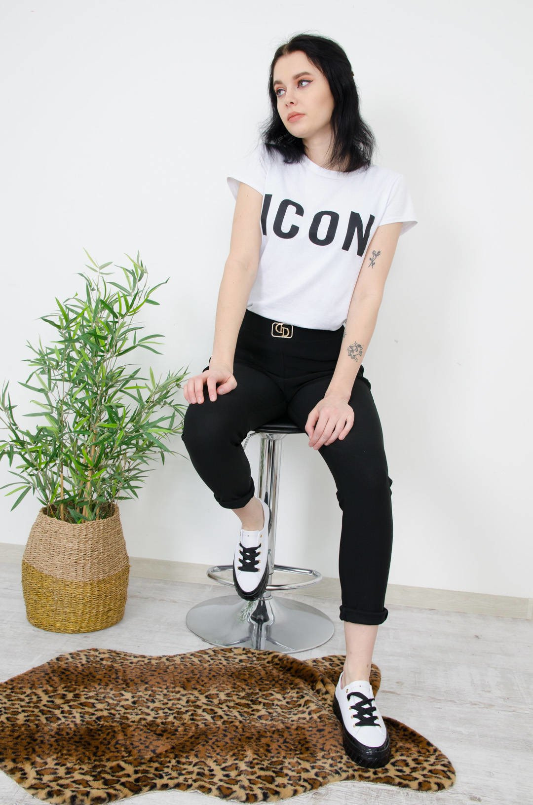 CZARNE LEGGINSY ZE ZŁOTYM ZNACZKIEM W PASIE