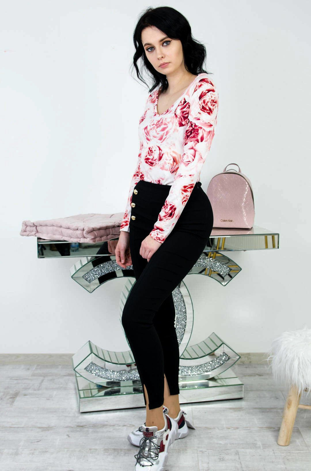 BIAŁE BODY Z DŁUGIM RĘKAWEM W CZERWONE KWIATY