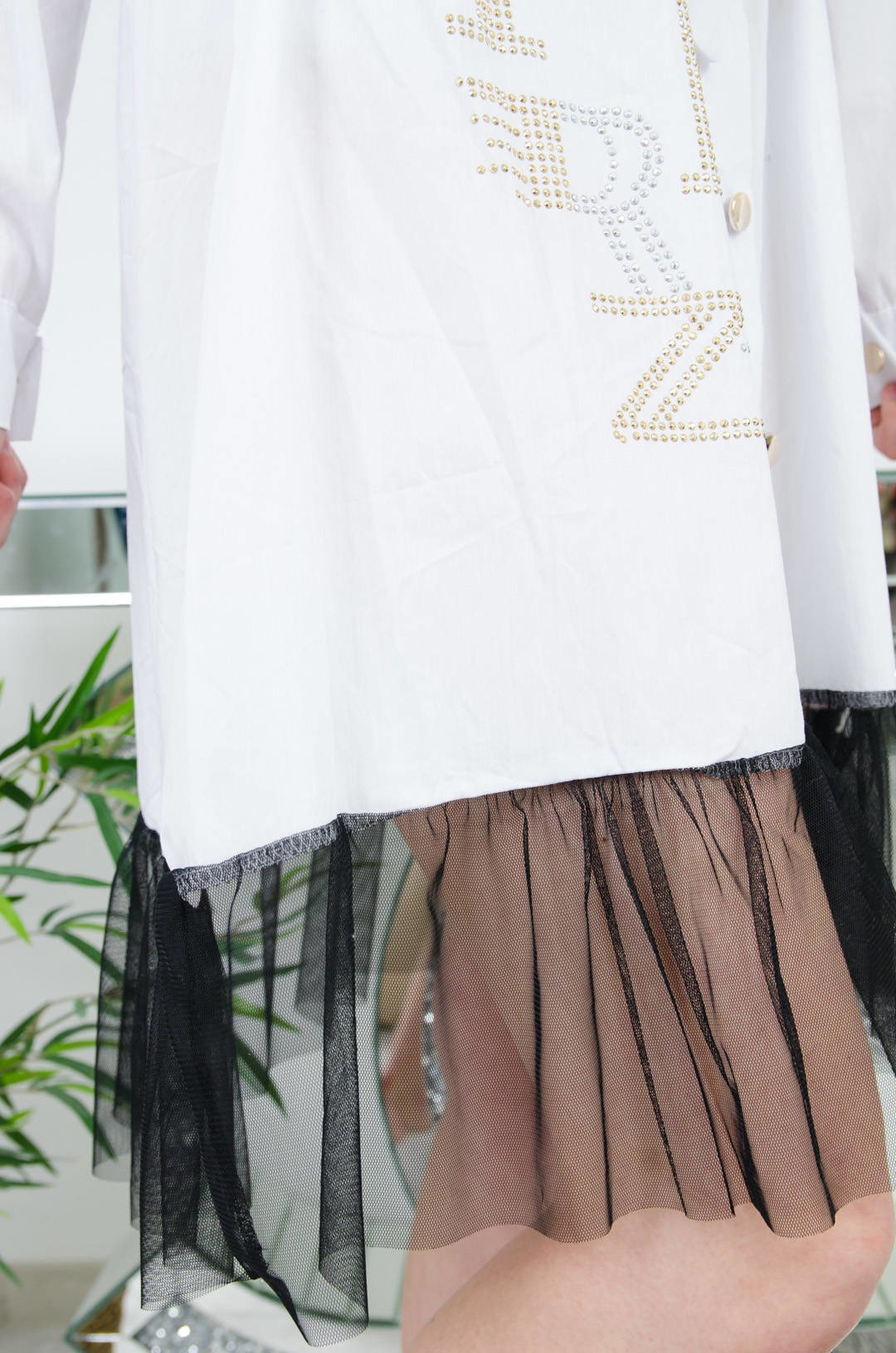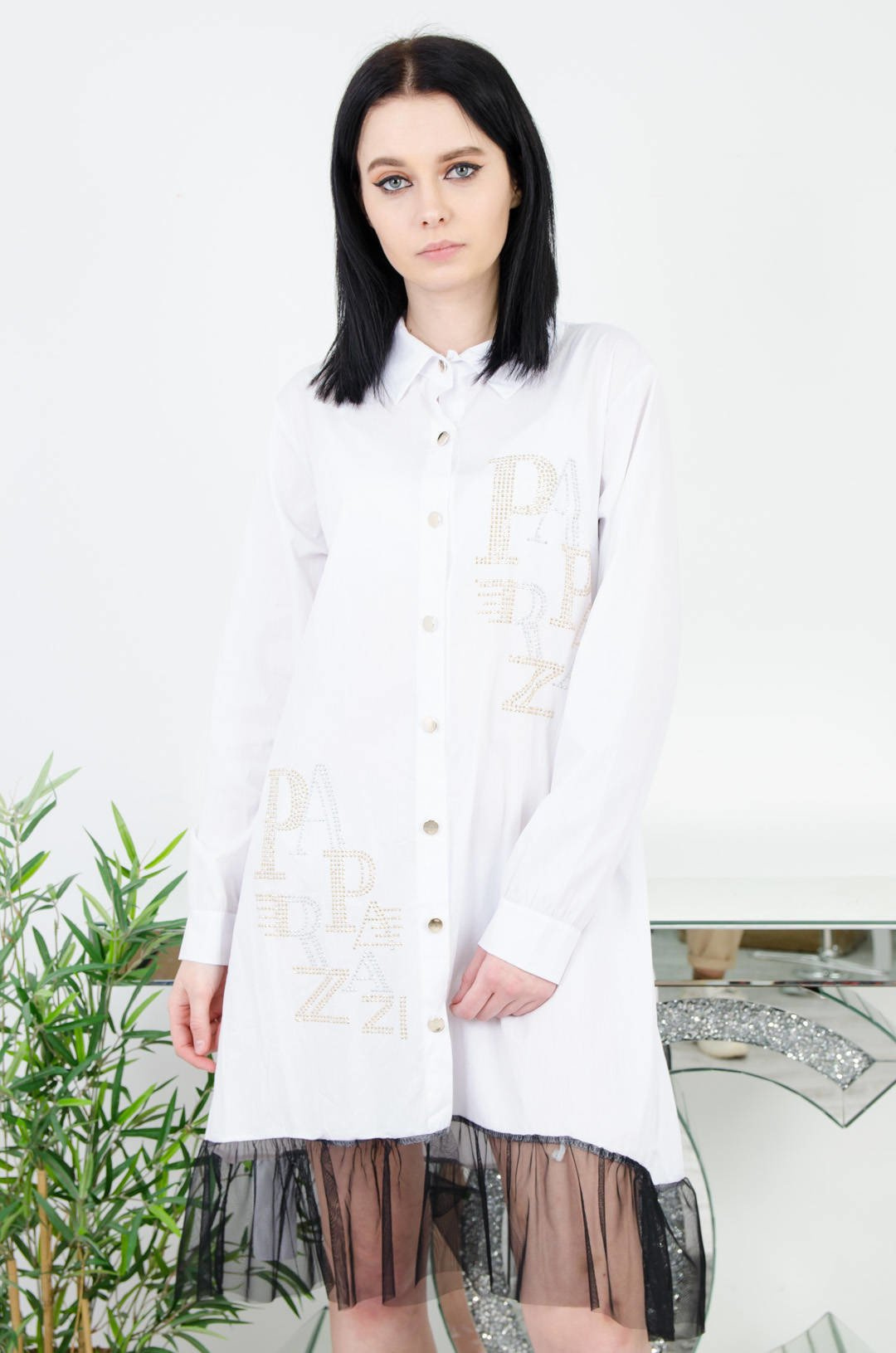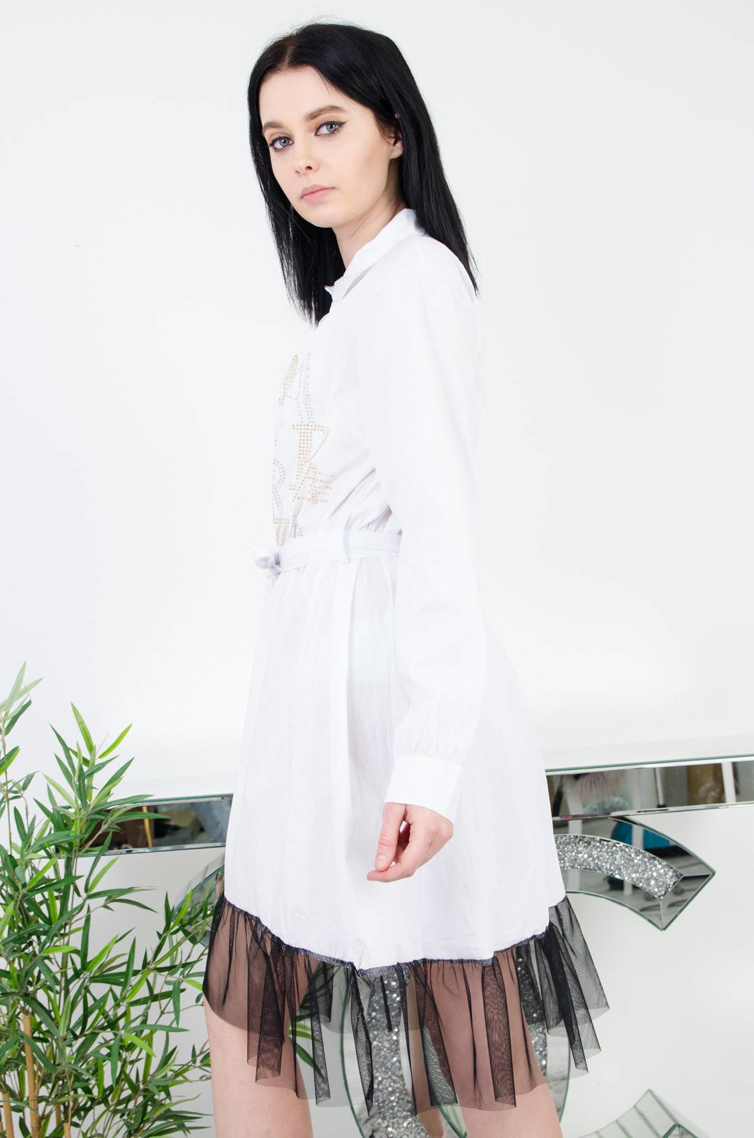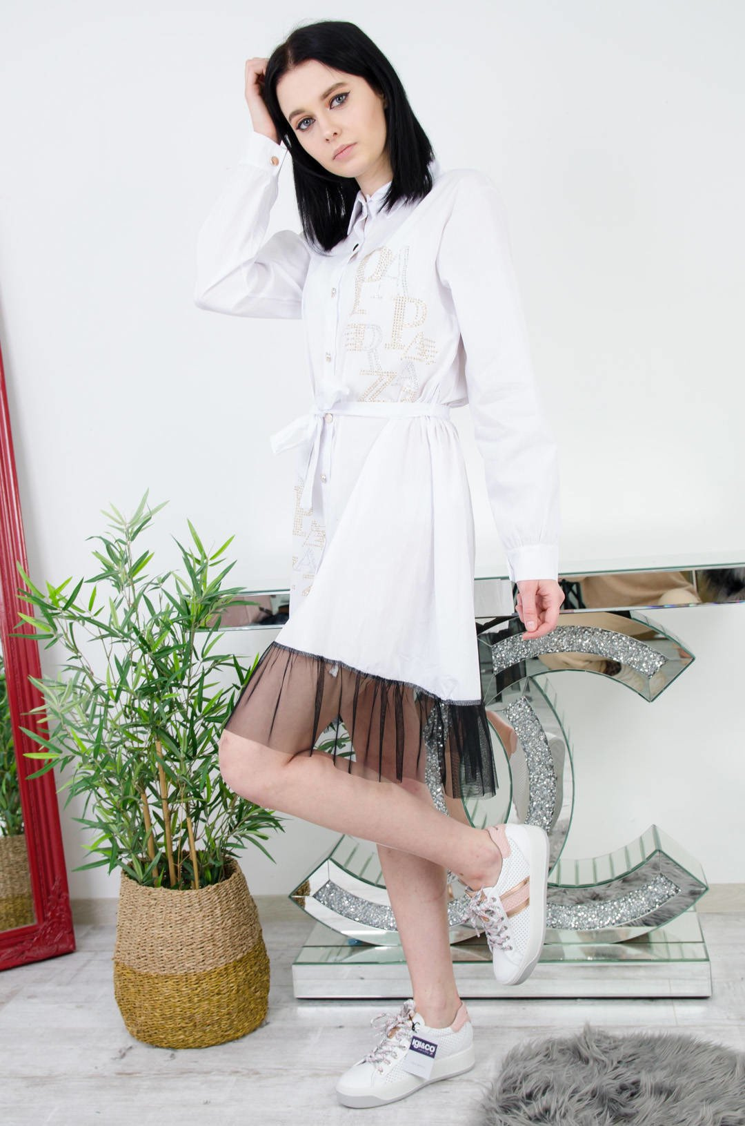 BIAŁA KOSZULOWA SUKIENKA Z TIULEM