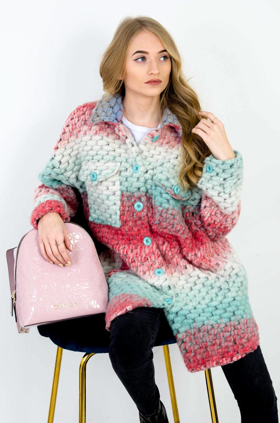 WIOSENNY PŁASZCZYK MULTIKOLOR - CZERWONO-ZIELONY