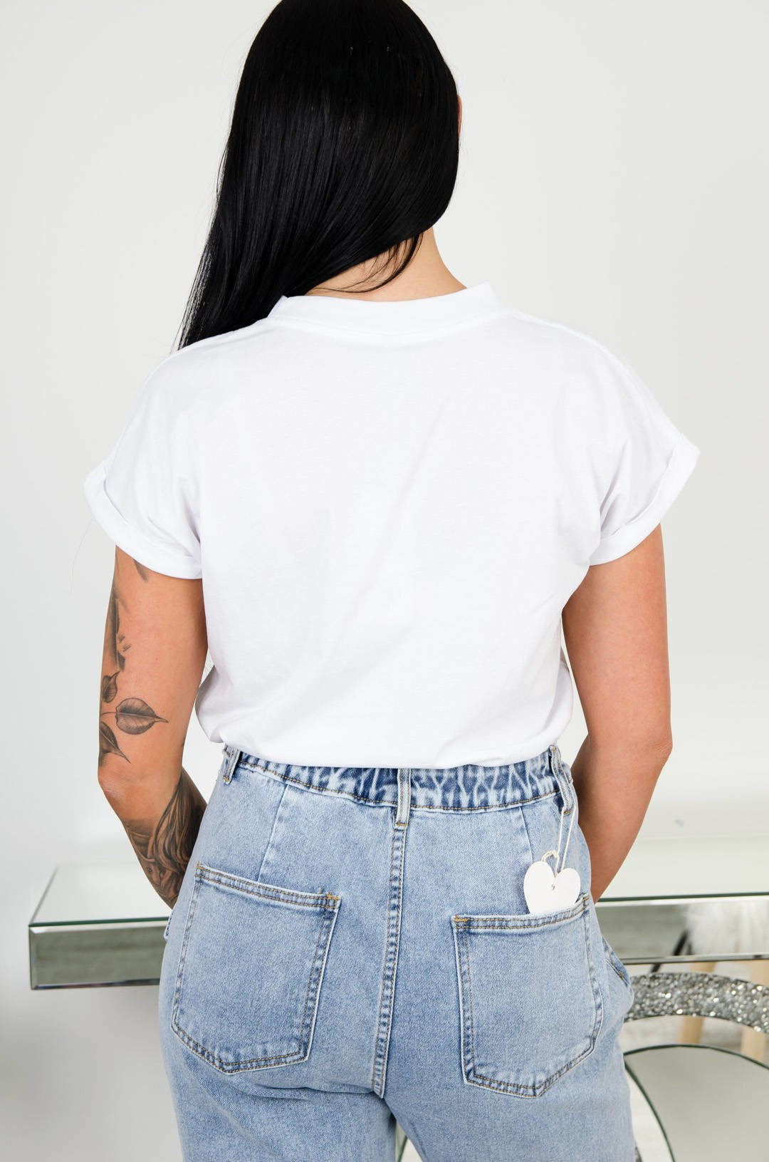 BIAŁY BAWEŁNIANY T-SHIRT ALL YOU NEED IS LESS