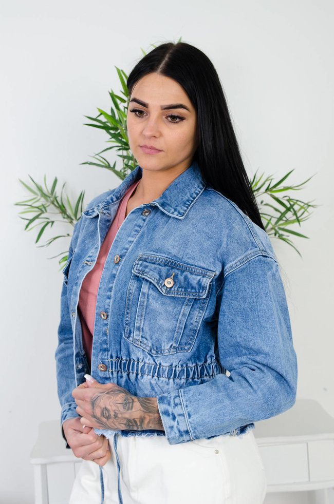 NIEBIESKA KURTKA JEANSOWA Z MARSZCZENIEM