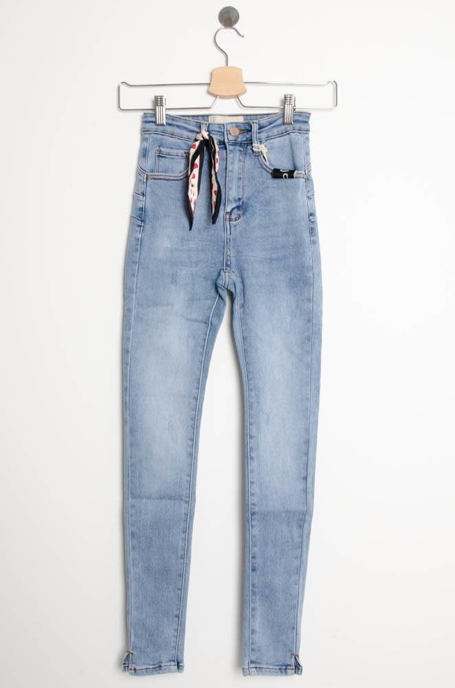 JASNE SPODNIE JEANSOWE PUSH UP ZE WSTĄŻKĄ-WYSOKI STAN