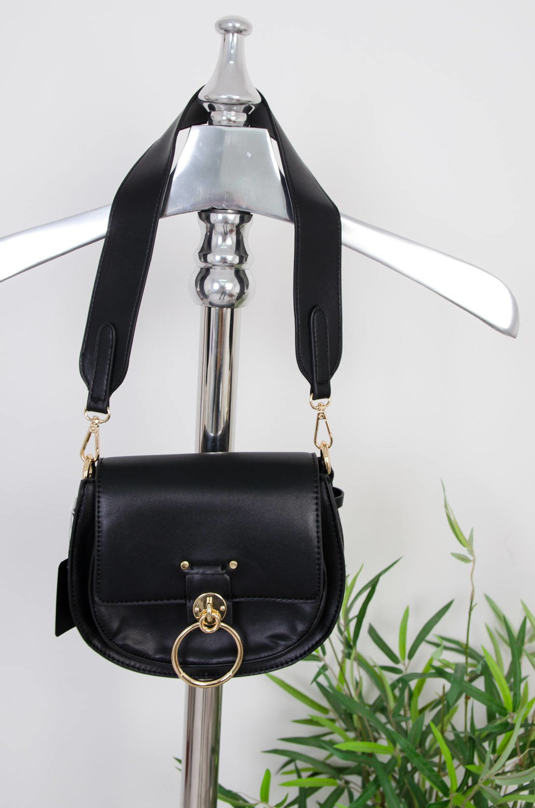 MAŁA CZARNA TOREBKA Z SZEROKIM PASKIEM.