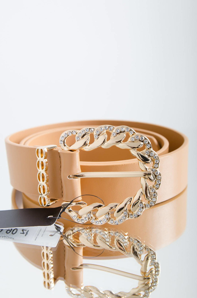 BRĄZOWY PASEK Z OZDOBNĄ KLAMRĄ
