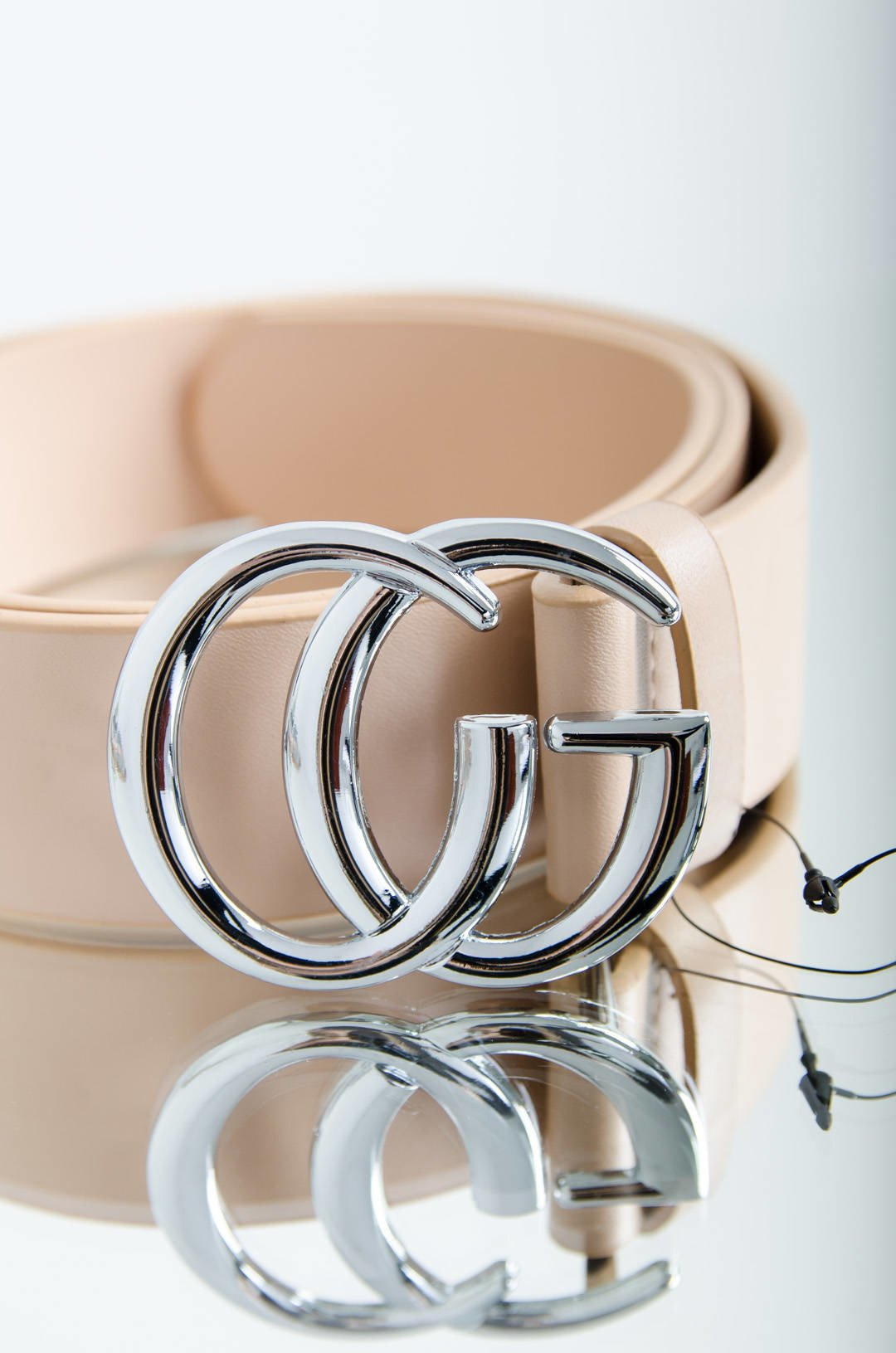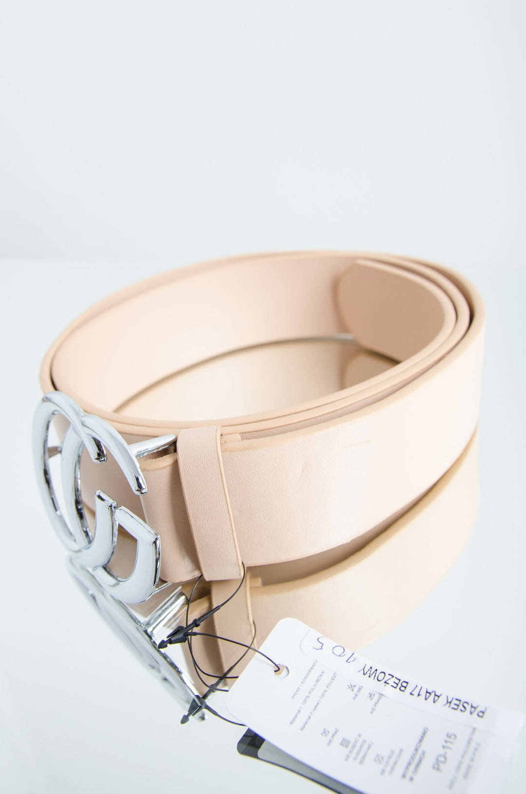 BEŻOWY SZEROKI PASEK ZE SREBRNĄ KLMARĄ CG