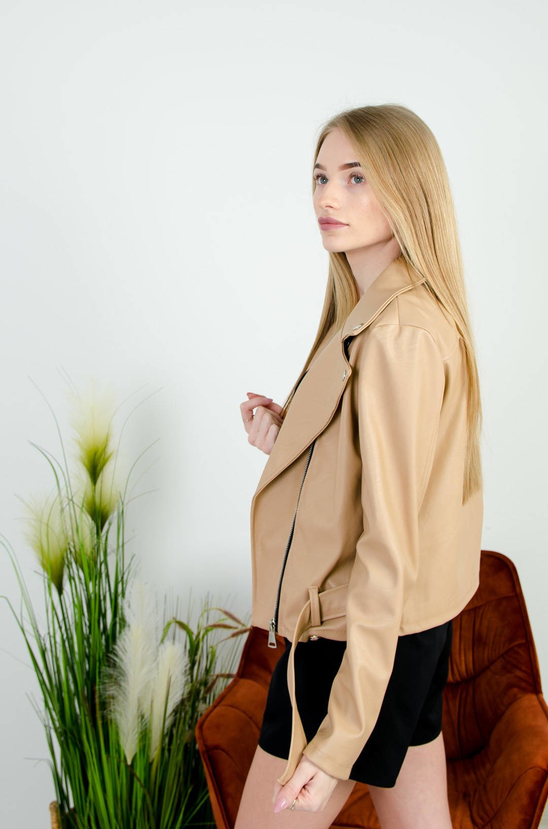 BEŻOWA RAMONESKA Z EKO SKÓRY Z PASKIEM