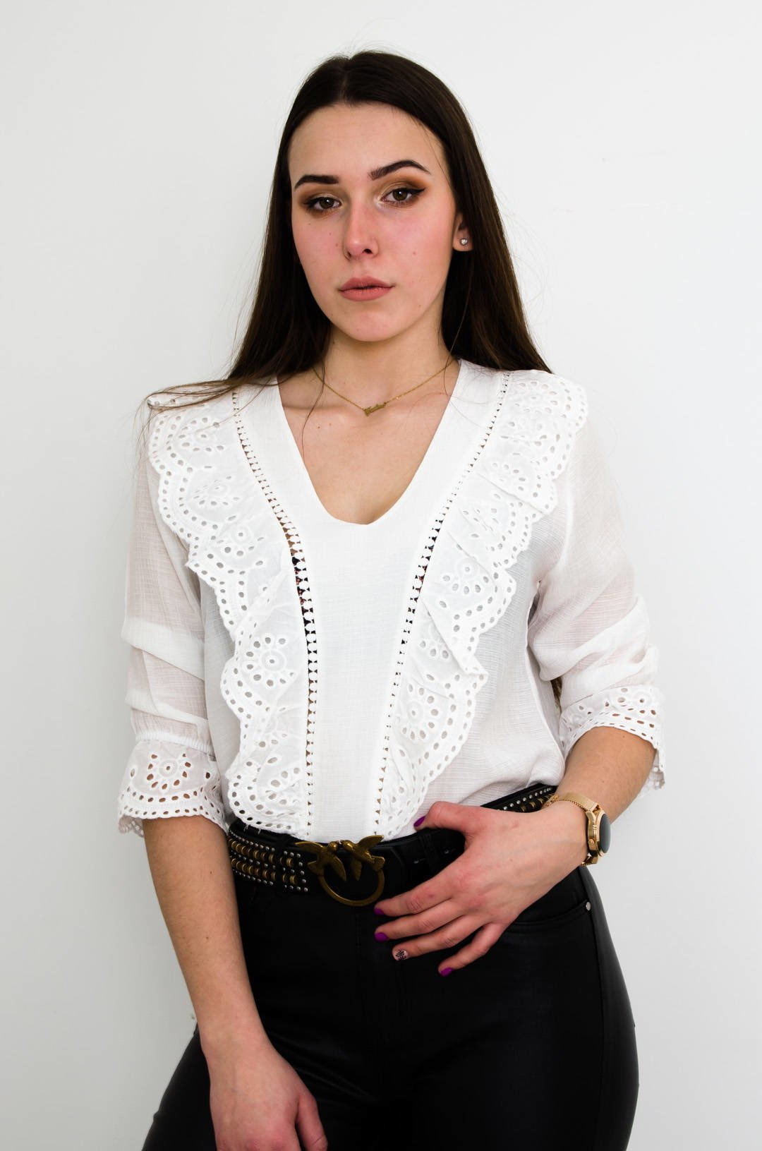 BIAŁA BLUZKA W SZPIC Z HAFTEM