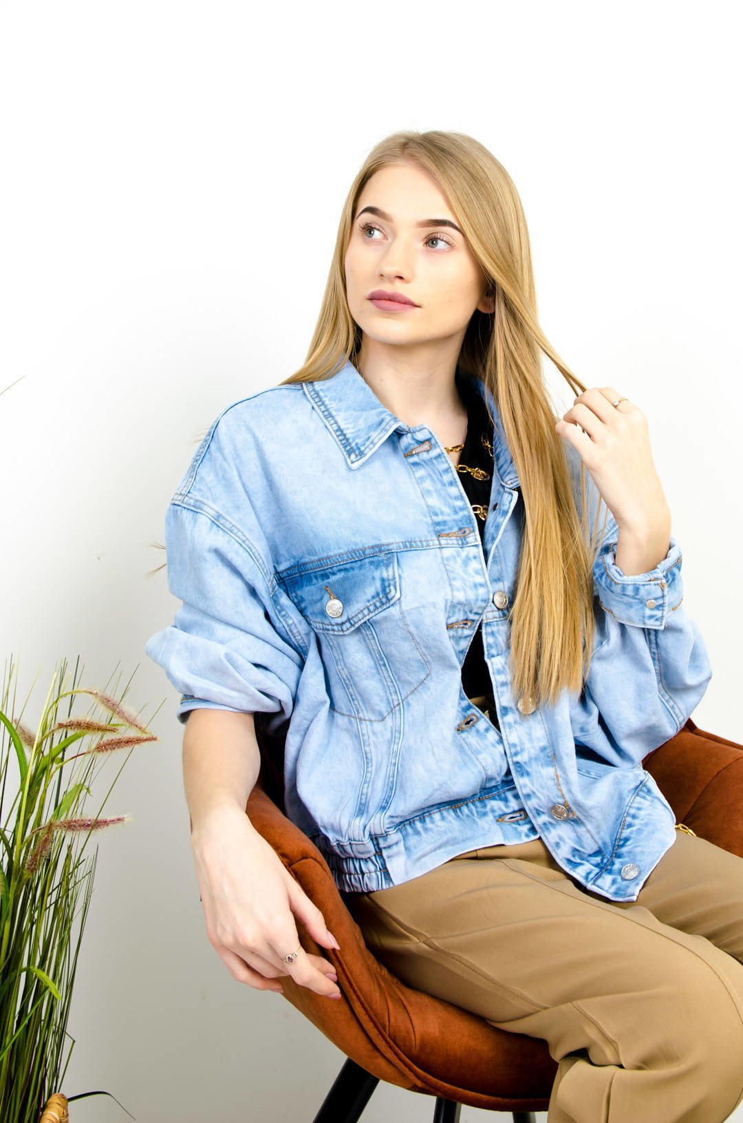 JASNA KRÓTKA  KURTKA JEANSOWA ZE ŚCIAGACZEM- BOMBERKA