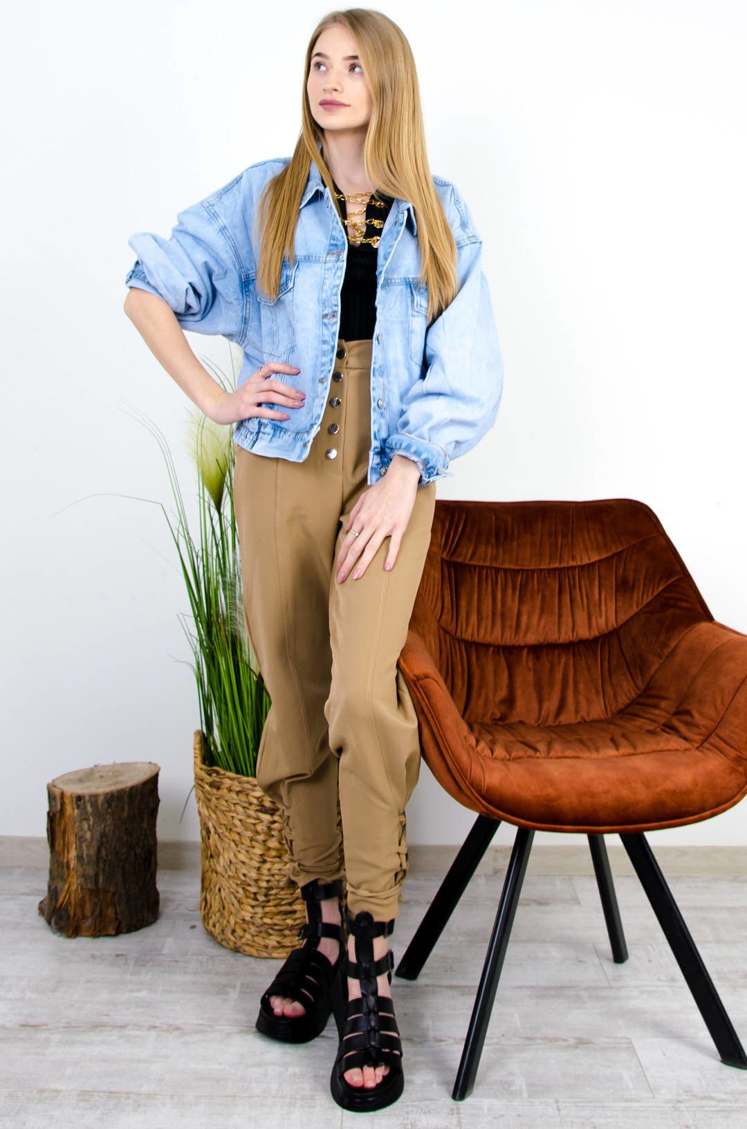 JASNA KRÓTKA KURTKA JEANSOWA ZE ŚCIAGACZEM- BOMBERKA