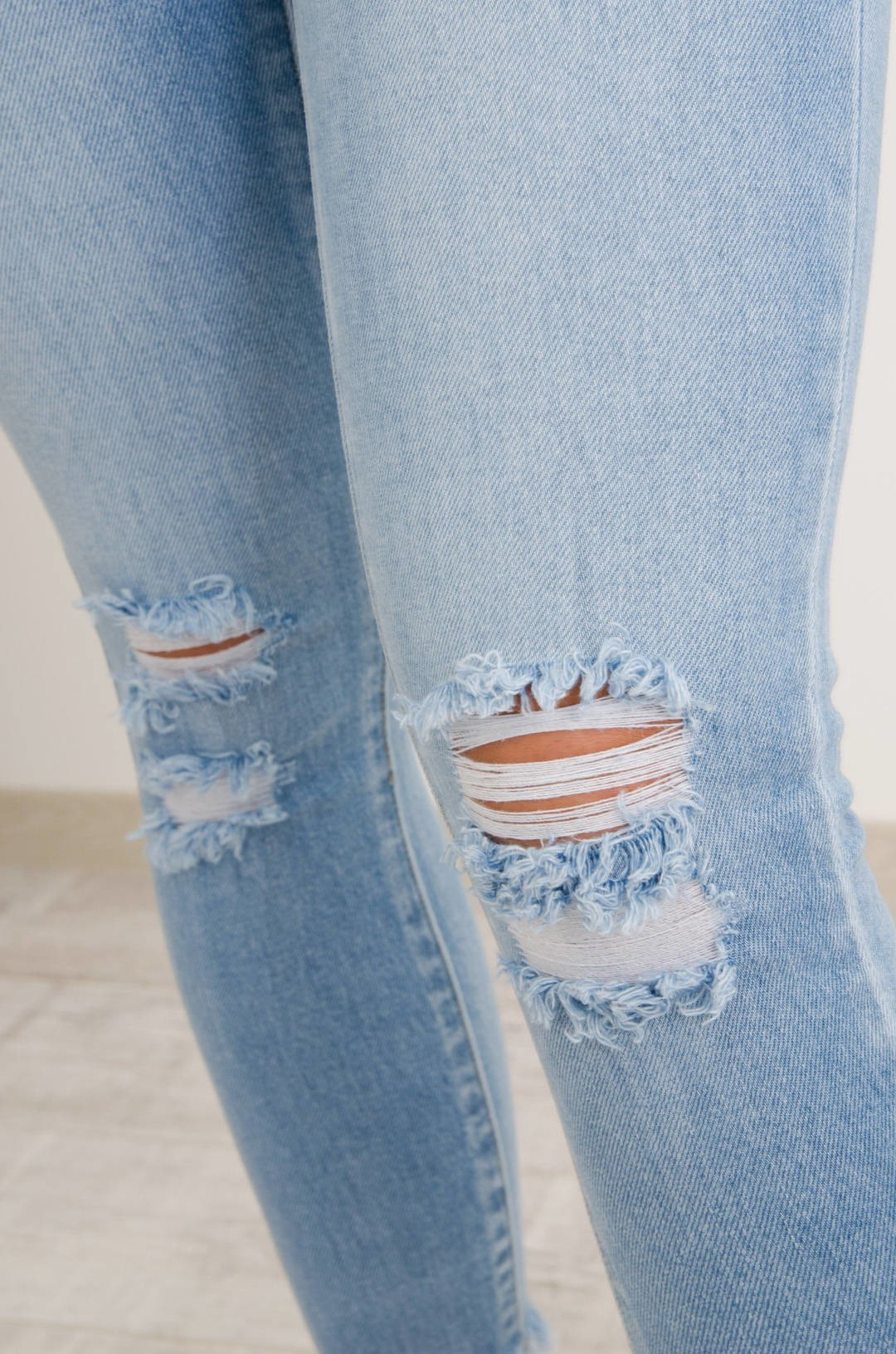 JASNE SPODNIE JEANSOWE Z DZIURAMI PRZÓD TYŁ
