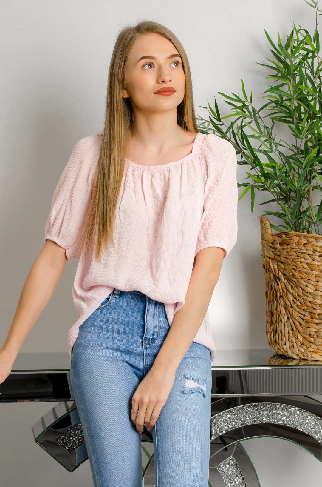 RÓŻOWA BLUZKA Z KWADRATOWYM DEKOLTEM