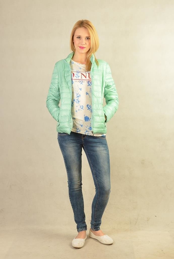 Kurtka pikowana ortalionowa, zapinana na zamek, dwie kieszenie po bokach.
