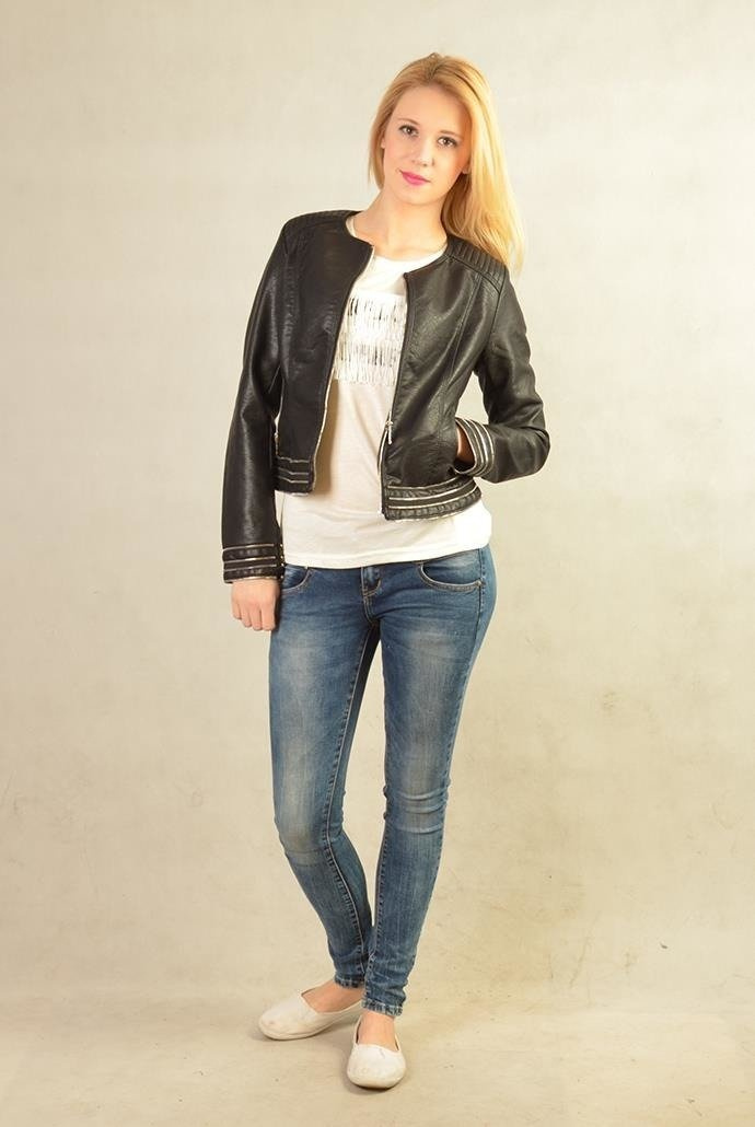 Kurtka zapinana na suwak, wykonana ze skóry ekologicznej, po bokach dwie zapinane kieszenie. Przy rękawach, oraz u dołu ozdobne zamki.